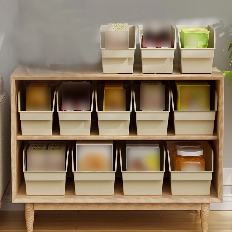 กล่องพลาสติกอเนกประสงค์แบบเอียงสำหรับตู้ในครัวเรือนการเรียงลำดับบนโต๊ะมุมขวาพาร์ทิชันกล่องเก็บของเบ็ดเตล็ด