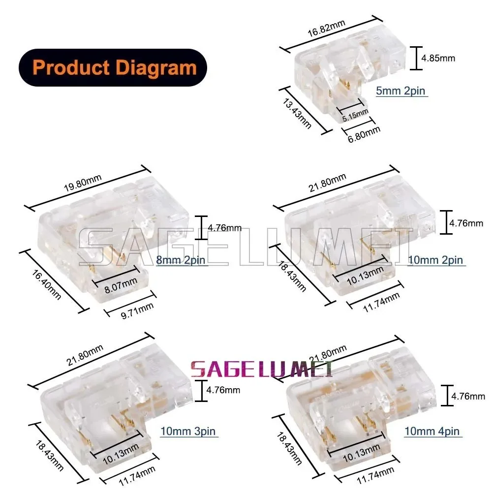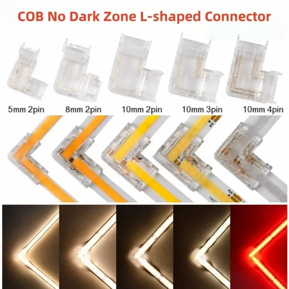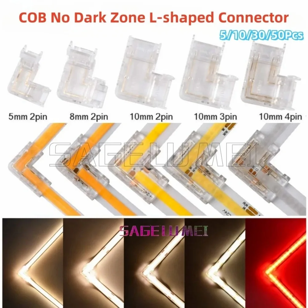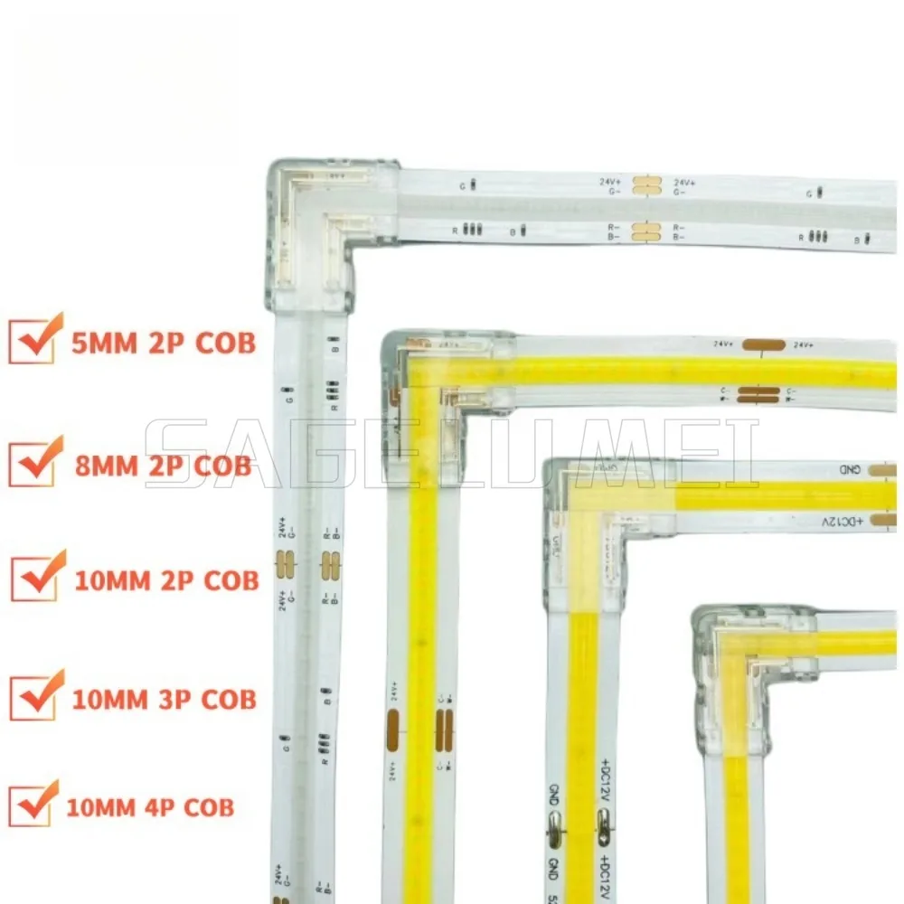 5/10pcs L รูปร่างมุม 90 องศา 2/3/4 Pin 5/8/10 มม.COB LED Connectors Solderless โปร่งใส Connector Strip to Strip ไฟ