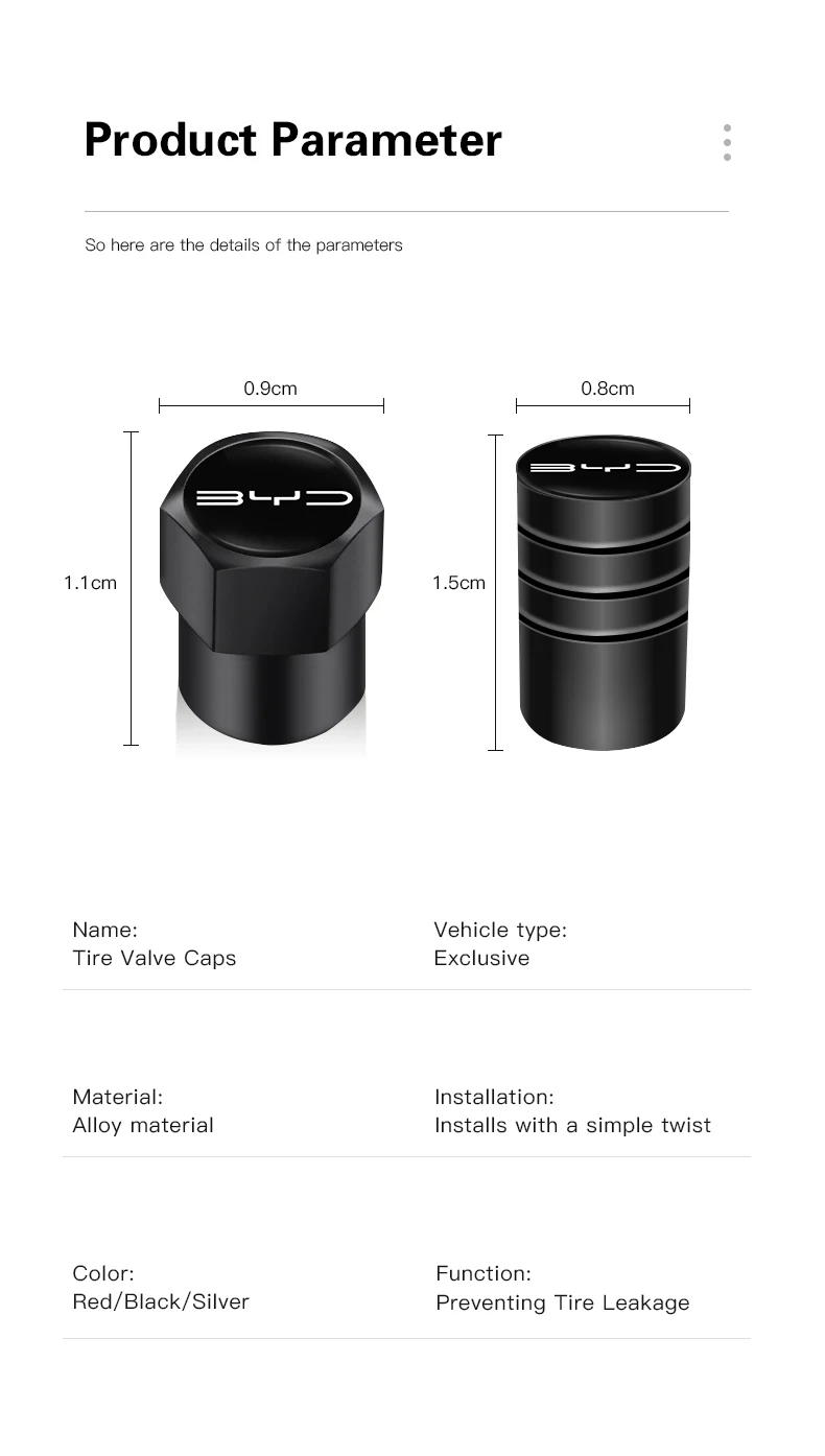 4 ชิ้นอลูมิเนียมรถล้อยางวาล์ว Caps Stem อุปกรณ์เสริมสําหรับ BYD Tang F3 E6 Atto หยวน Plus เพลง Max F0 G3 I3 Ea1 Dm