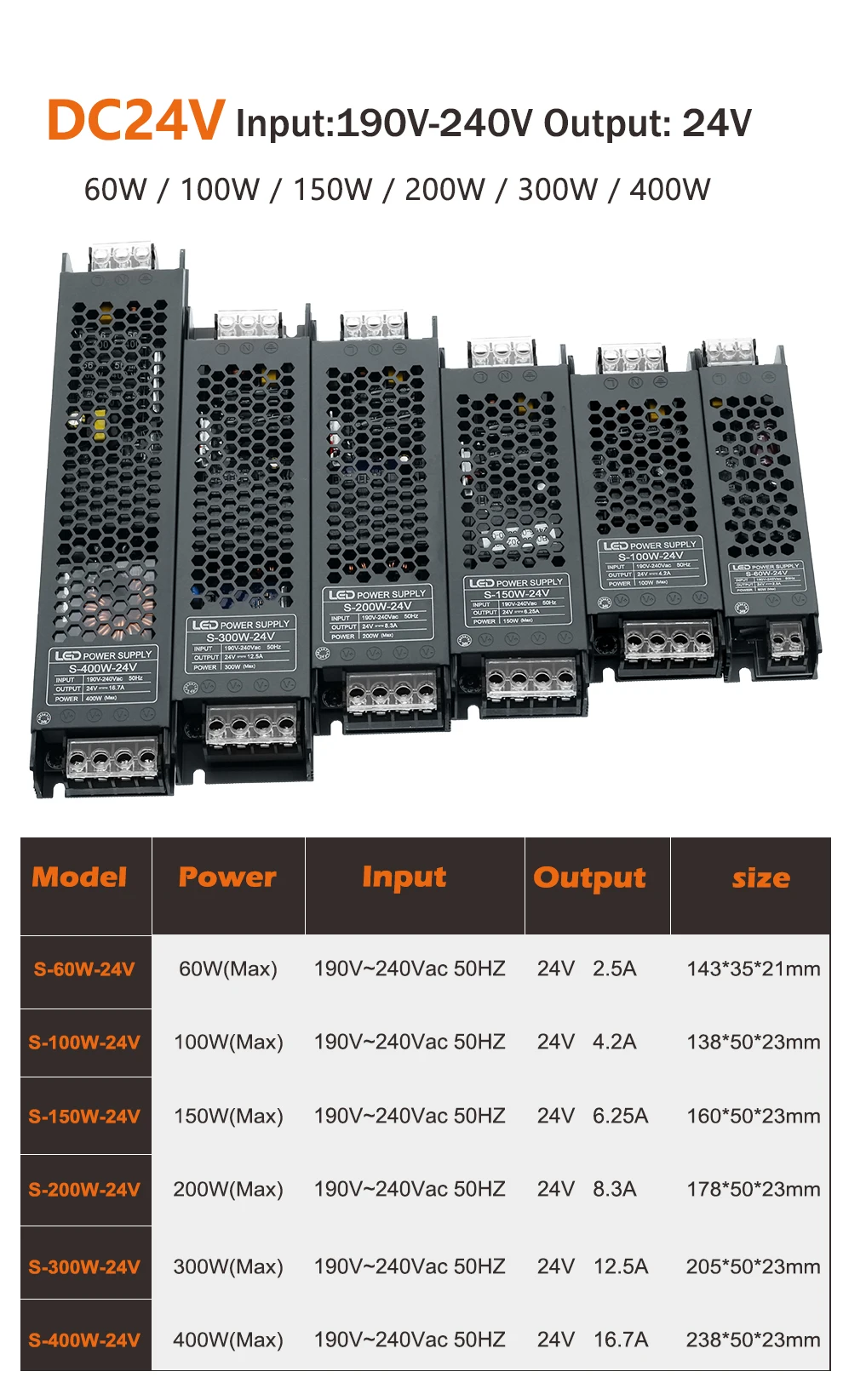 หม้อแปลงไฟ LED 12V 24V ไดรเวอร์ LED แหล่งจ่ายไฟ 60W 100W 200W 300W 400W 220V เป็น 12 24 โวลต์ สำหรับไฟ LED Strip