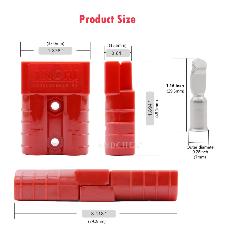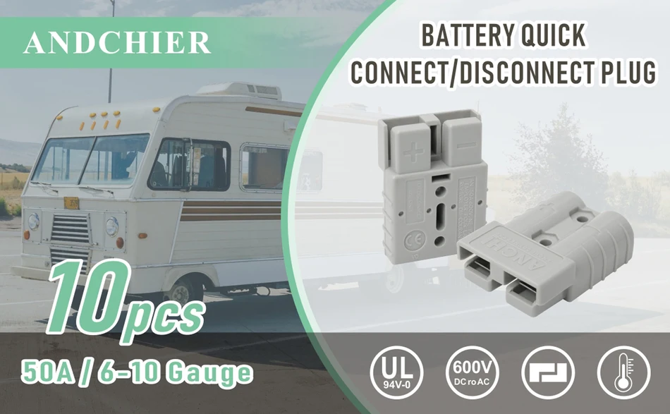 10PCS 50A 600V 6-12AWG แบตเตอรี่สายเชื่อมต่อสําหรับ Anderson สไตล์ Power Connector อินเวอร์เตอร์รถจักรยานยนต์แบตเตอรี่ชาร์จอะแดปเตอร์
