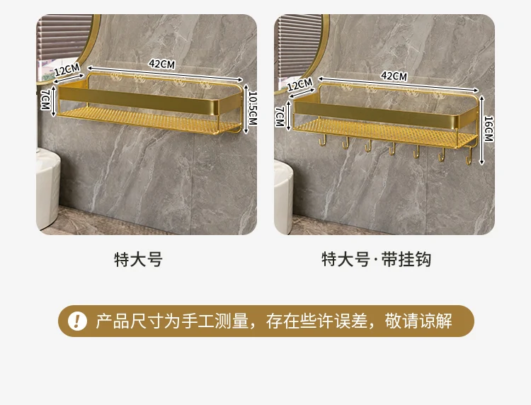 Gold Storage Rack ชั้นวางของในห้องน้ําติดผนังขาตั้งกล้องแชมพูและเจลอาบน้ําชั้นเก็บอุปกรณ์ห้องน้ํา