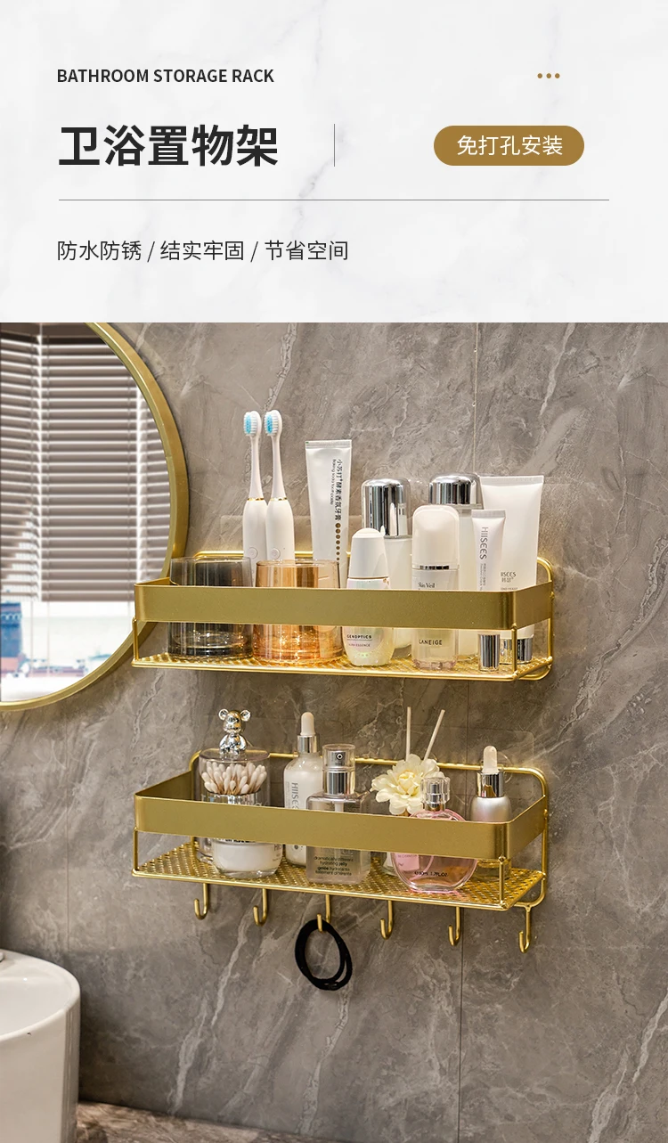 Gold storage rack bathroom storage rack wall mounted tripod shampoo and shower gel storage rack bathroom accessories