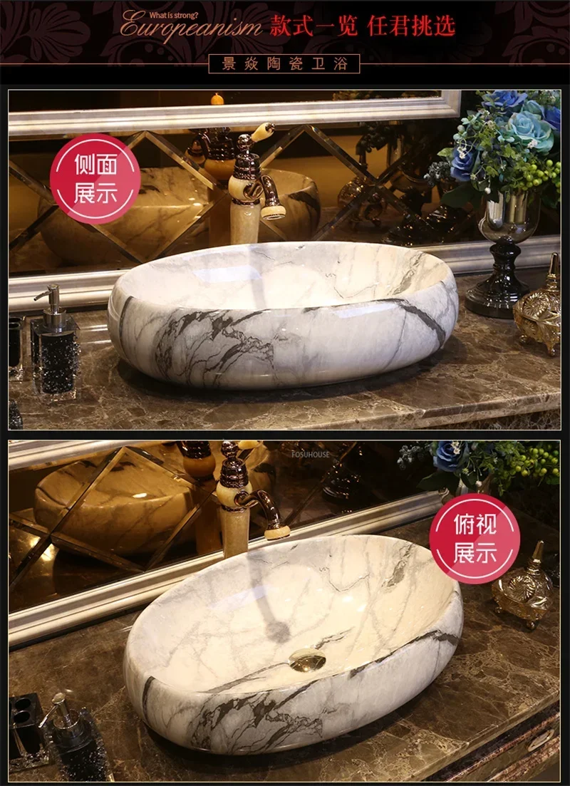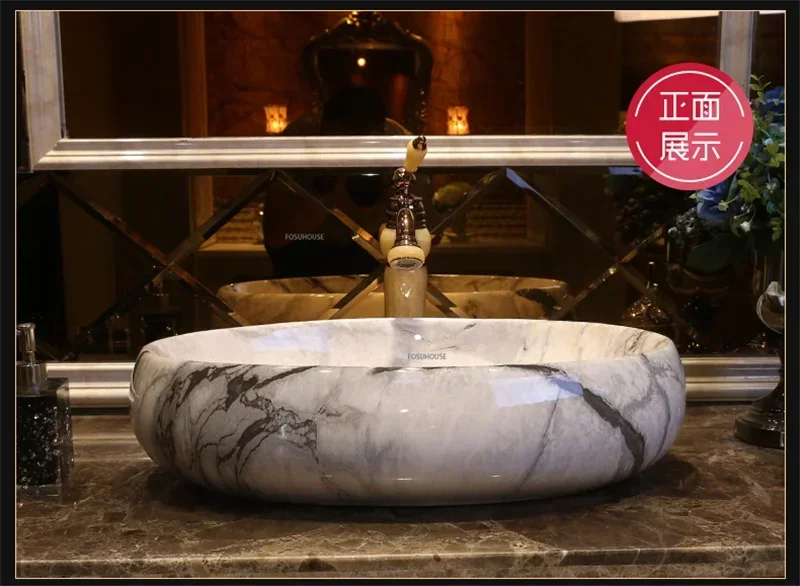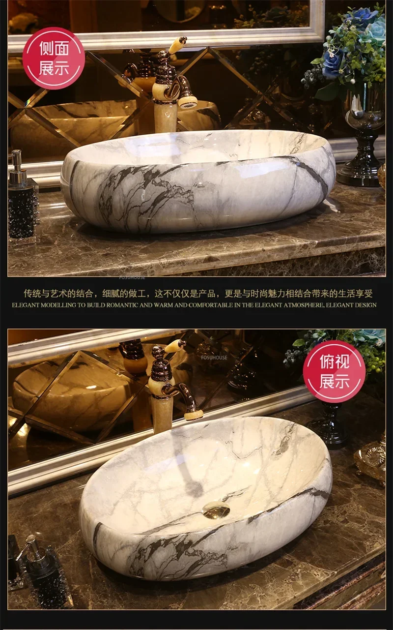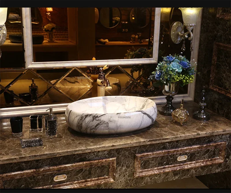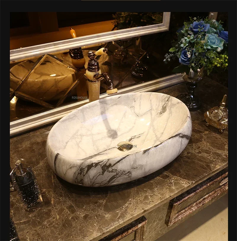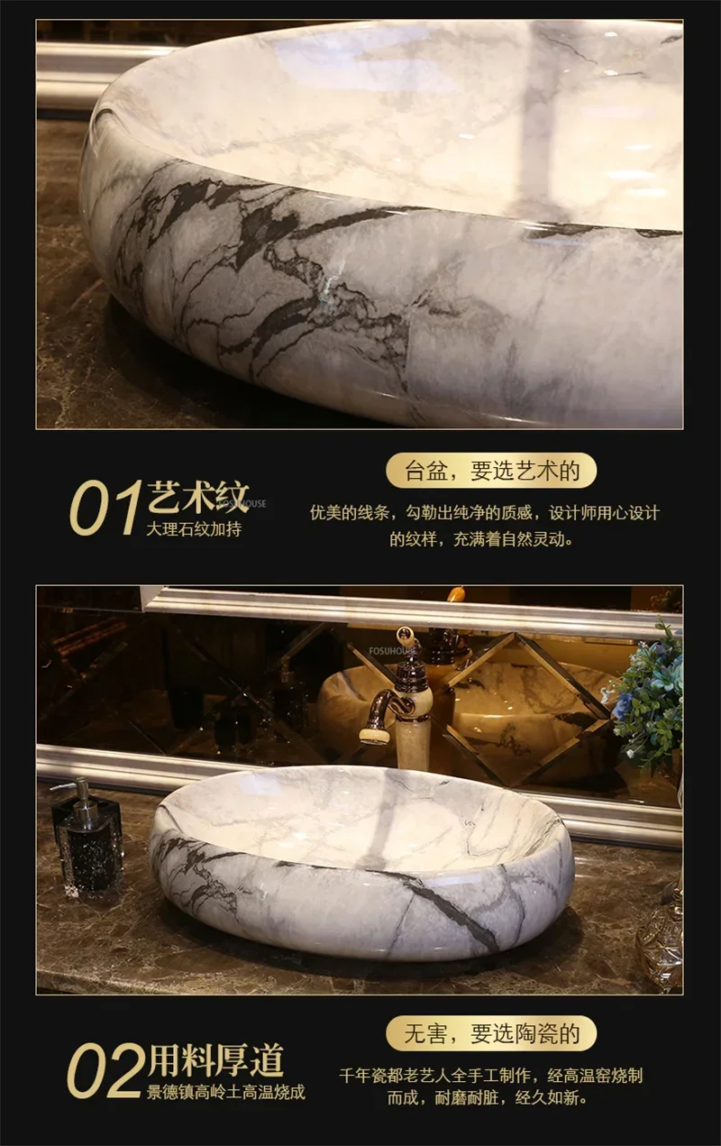 Nordic Marbling อ่างล้างหน้าเฟอร์นิเจอร์ห้องน้ําเซรามิครูปไข่อ่างล้างหน้าห้องน้ําอ่างล้างจานชามอ่างล้างหน้าอ่างล้างหน้าอ่างล้างจานชาม