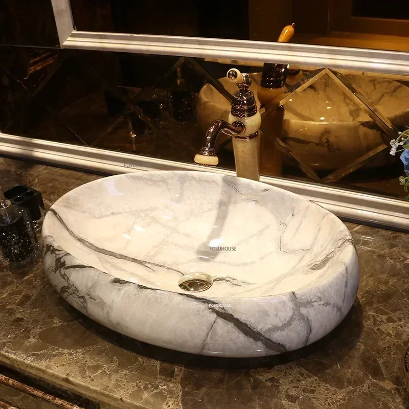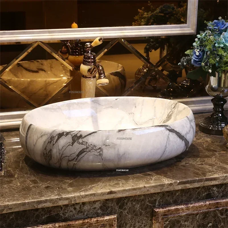 Nordic Marbling อ่างล้างหน้าเฟอร์นิเจอร์ห้องน้ําเซรามิครูปไข่อ่างล้างหน้าห้องน้ําอ่างล้างจานชามอ่างล้างหน้าอ่างล้างหน้าอ่างล้างจานชาม