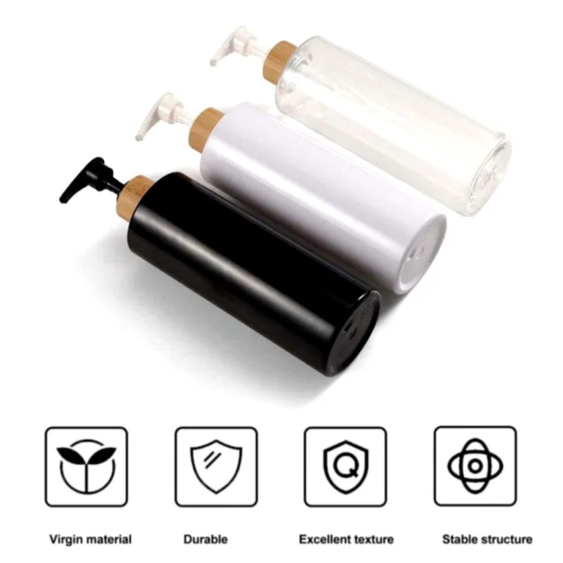 ขวดปั๊มน้ำไม้ไผ่300/500มล. สำหรับห้องน้ำจานสบู่สัตว์เลี้ยงขวดโลชั่นรีฟิลเจลอาบน้ำแบบเติมได้