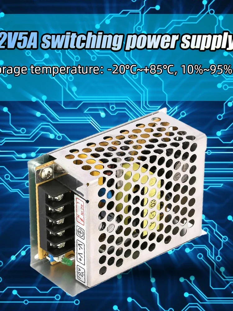 แหล่งจ่ายไฟสลับ5A 12V 60W สวิตช์หม้อแปลง220 AC ถึง12V DC สำหรับไฟแถบไฟ LED คุณสมบัติ: 1.ความต้านทานการรบกวนสูง:สวิทชิ่งเพาเวอร์ซัพพลายนี้มีความต้านทานการรบกวนที่ดีเยี่ยมทำให้เชื่อถือได้สูงและมีเสถียรภาพ หมายเหตุ: