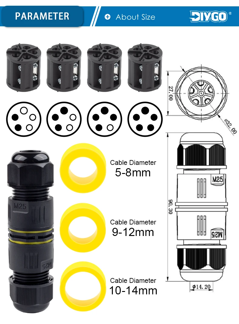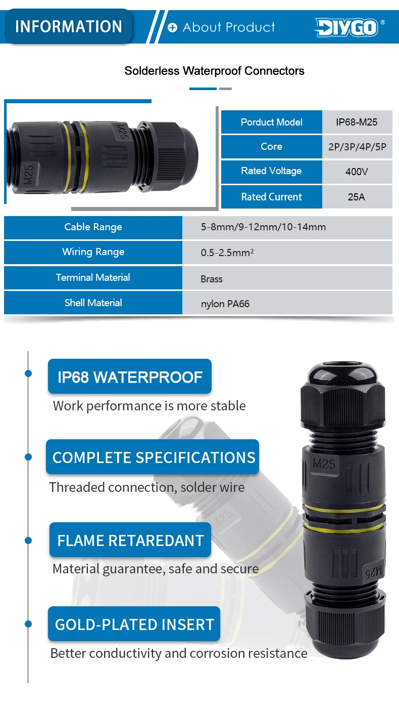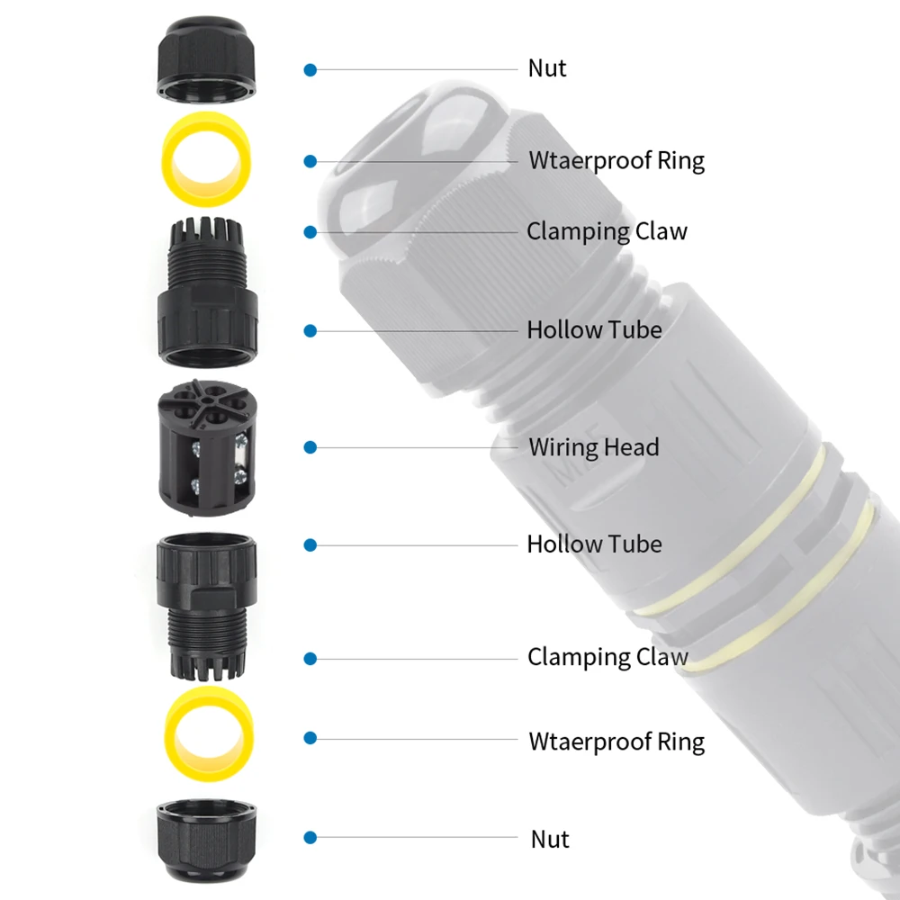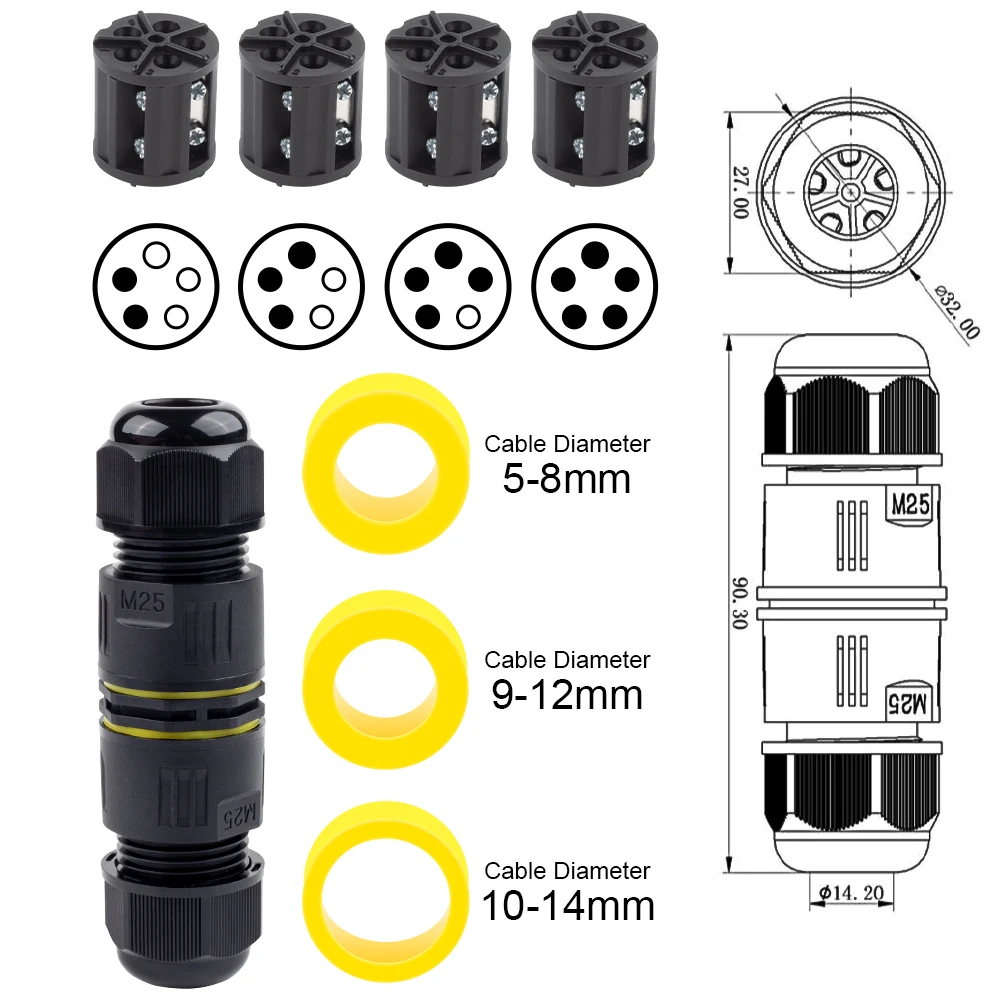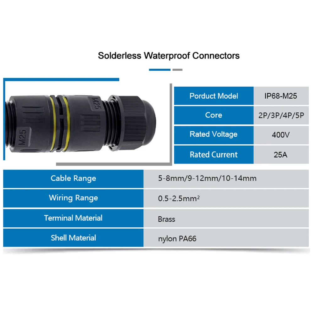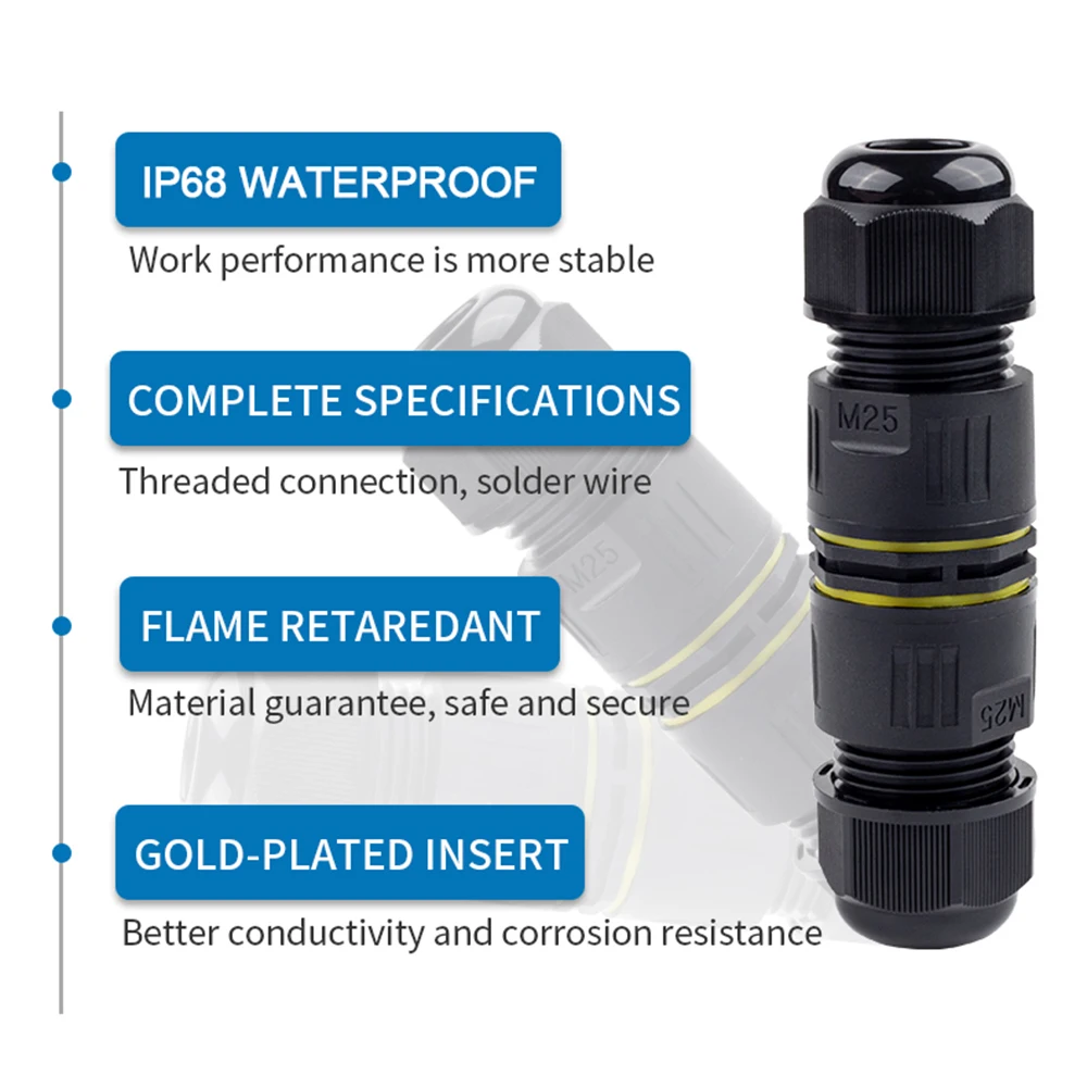IP68 M25 Cable Connector Outdoor Waterproof Junction Box Screw Connection 2/3/4/5 Pin Rainproof Terminal Solder Less LED Lamp