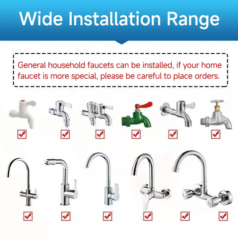 • เข้ากันได้กับก๊อกส่วนใหญ่:เครื่องกรองน้ำสำหรับก๊อกน้ำนี้เข้ากันได้กับก๊อกน้ำมาตรฐานส่วนใหญ่ทำให้เป็นตัวเลือกที่หลากหลายสำหรับครัวเรือนที่มีก๊อกน้ำชนิดต่างๆ