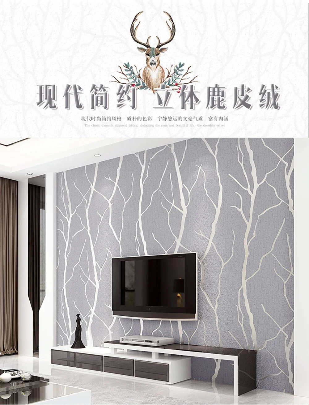 โมเดิร์นเรียบง่ายวอลล์เปเปอร์หนังกวางหนาผ้าไม่ทอห้องนอนห้องนั่งเล่นพื้นหลังผนัง 3D วอลล์เปเปอร์ W152