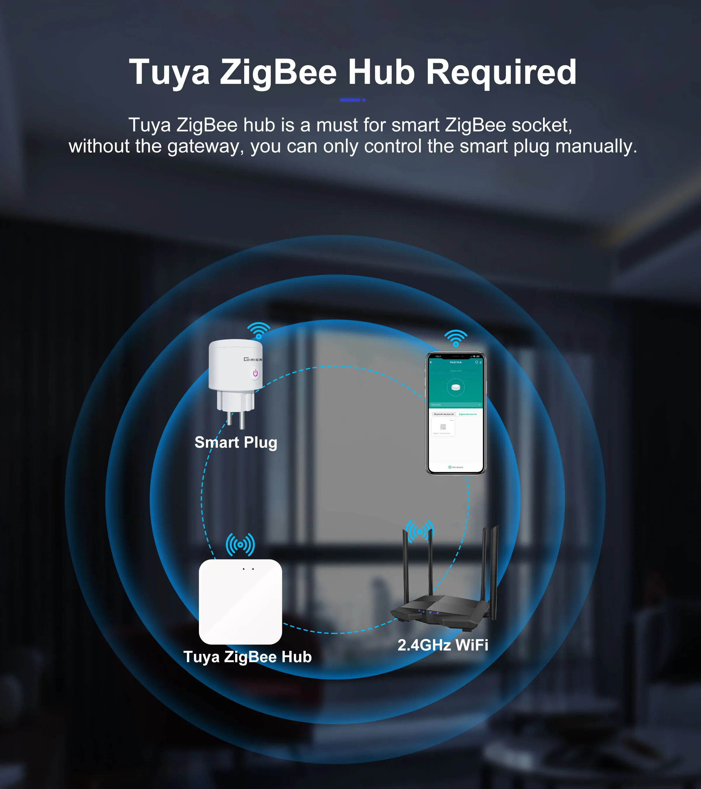 โปรดทราบ: จำเป็นต้องมี Tuya ZigBee Hub เพื่อปลดล็อกคุณสมบัติอัจฉริยะทั้งหมดหากไม่มีปลั๊กจะทำงานเป็นเต้ารับแบบแมนนวลเท่านั้น