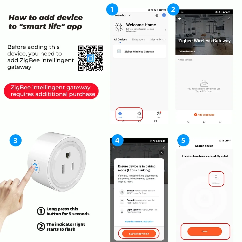 ปลั๊ก ZigBee US ทำงานร่วมกับ Tuya Zigbee Hub