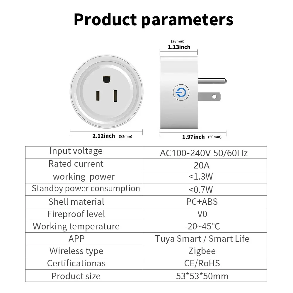 ปลั๊กอัจฉริยะ Tuya Smart Plug WiFi / Zigbee แบบ US 20A พร้อมฟังก์ชั่นตรวจสอบพลังงาน ตั้งเวลา เปิด-ปิด และควบคุมผ่านแอป Smart Life ใช้งานร่วมกับ Alexa และ Google Home ได้