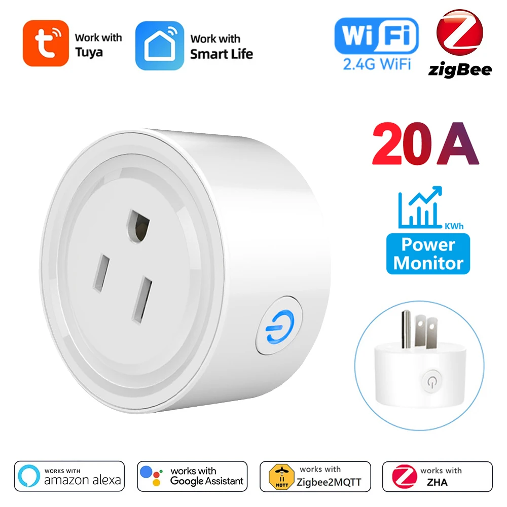 Tuya WiFi/Zigbee สมาร์ทปลั๊ก US ซ็อกเก็ต 20A พร้อม Power Monitor Timing Outlet Smart Life App Control ทำงานร่วมกับ alexa Google Home
