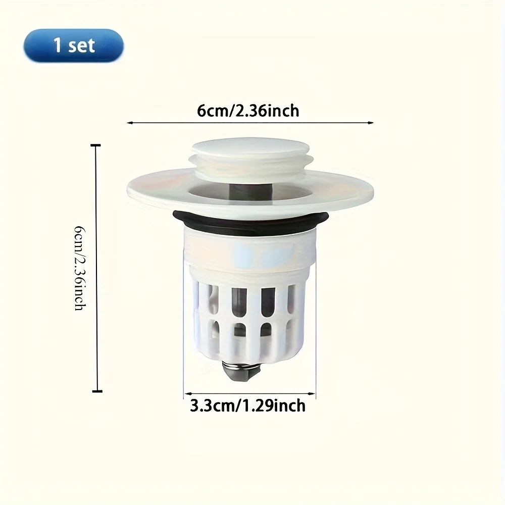 1 ชิ้น ปลั๊กท่อระบายน้ําแบบป๊อปอัพสําหรับอ่างล้างจานในห้องน้ํา ตัวกรองอ่างล้างจานแบบกดอเนกประสงค์ อุปกรณ์เสริมที่จําเป็นสําหรับห้องน้ํา อุปกรณ์อ่างล้างจานมีสไตล์ การระบายน้ําที่มีประสิทธิภาพ ขนาด: 6 ซม.* 6 ซม./2.36in * 2.36in