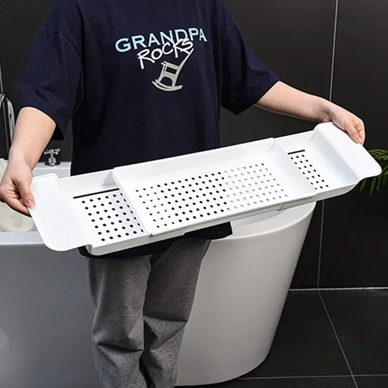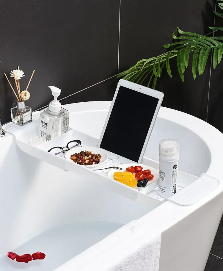 ชั้นวางอ่างอาบน้ำแบบยืดได้อ่างอาบน้ำในห้องน้ำที่วางผ้าเช็ดตัวอุปกรณ์ออแกไนเซอร์จัดเก็บไม้ไผ่สำหรับวางหนังสือ