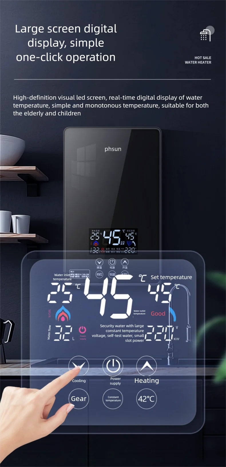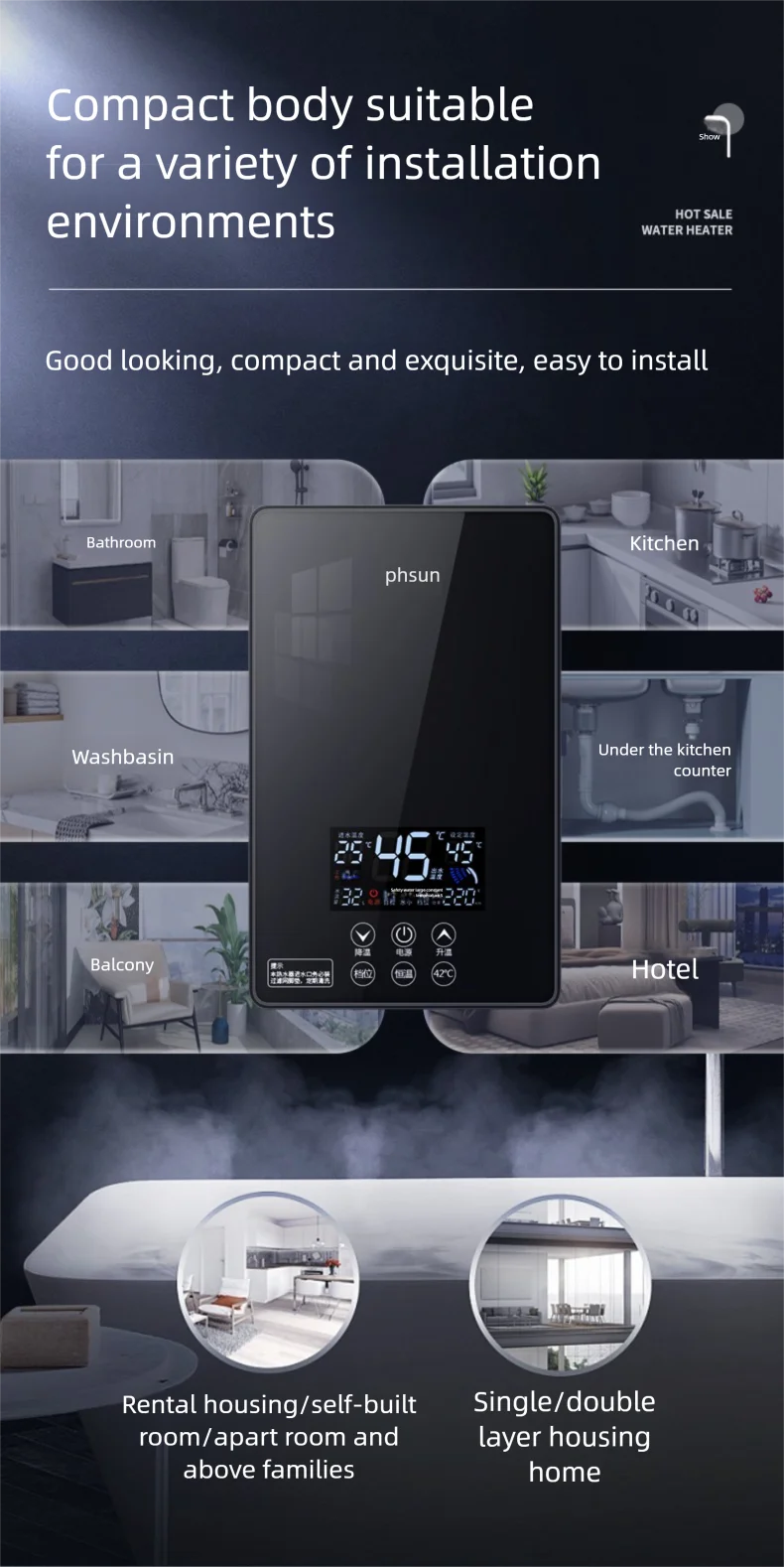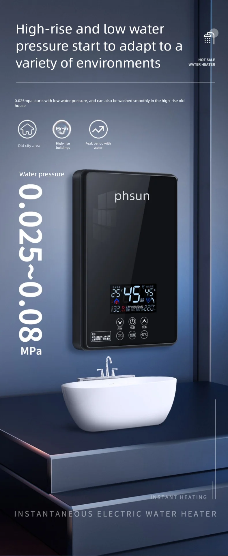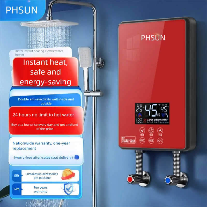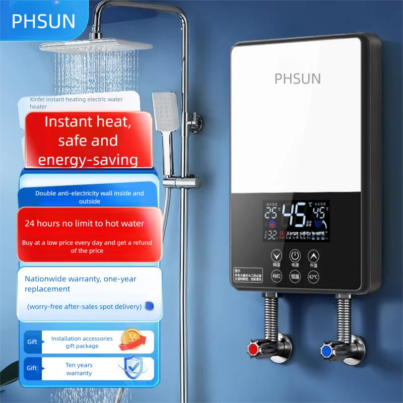 PHSUN เครื่องทําน้ําอุ่นไฟฟ้าทันที ห้องครัวในครัวเรือน ห้องน้ํา ห้องครัวขนาดเล็ก ทําน้ําร้อนทันทีให้ความร้อนเร็ว