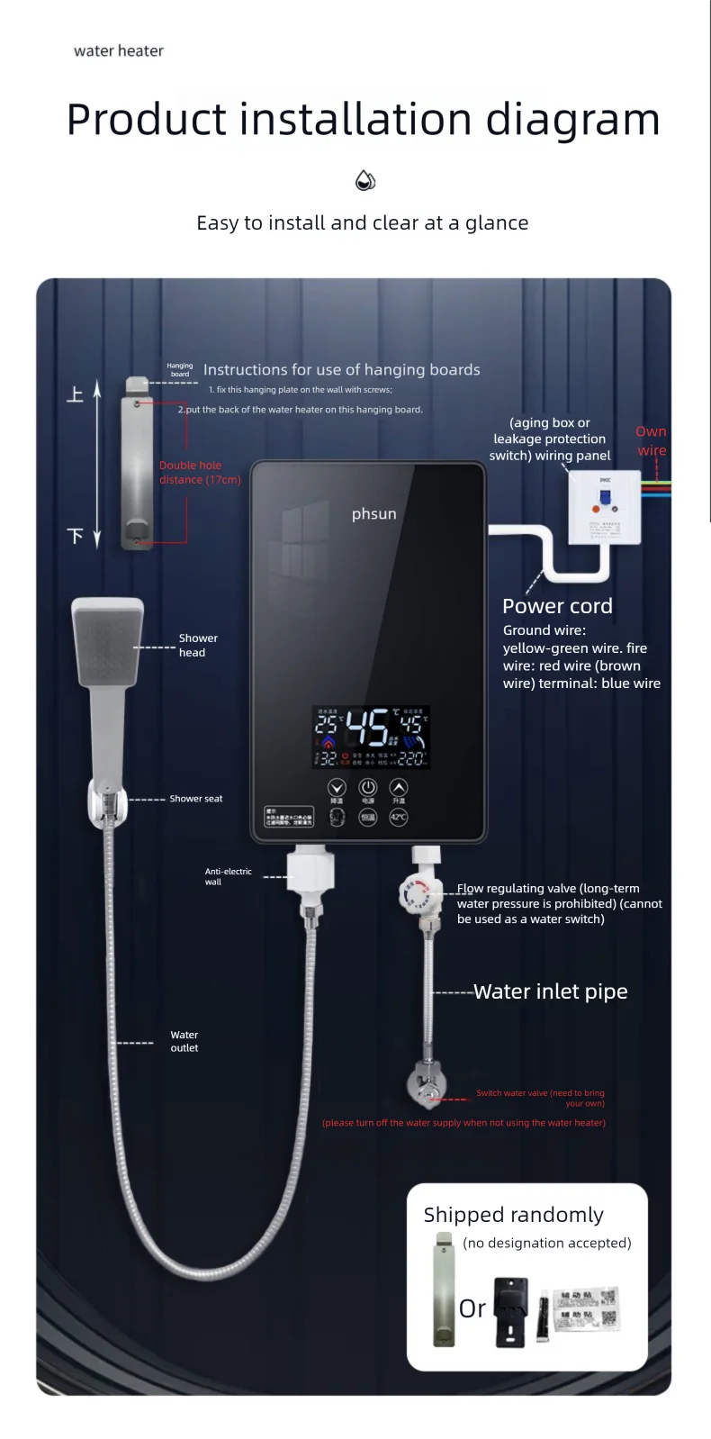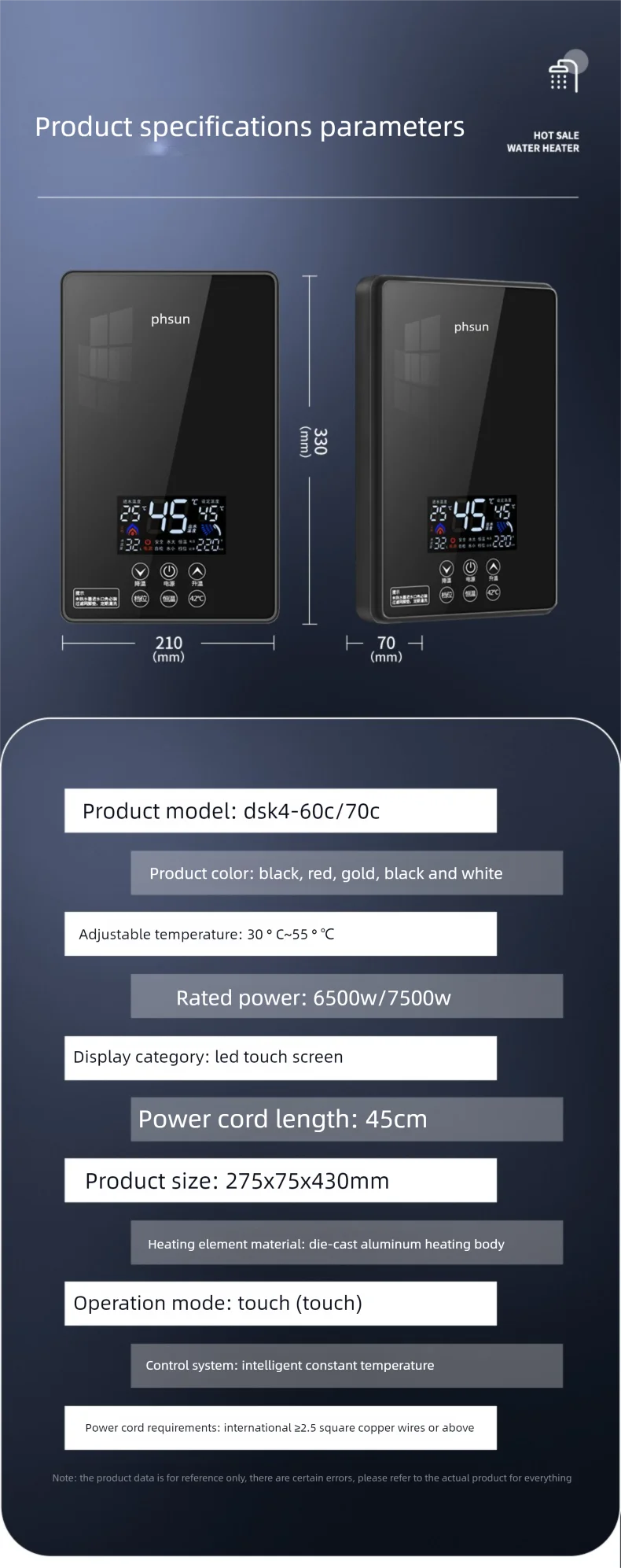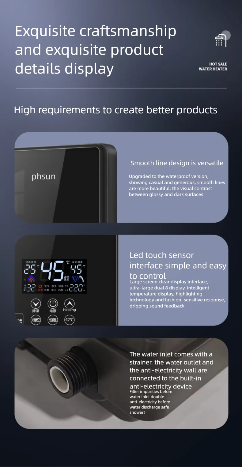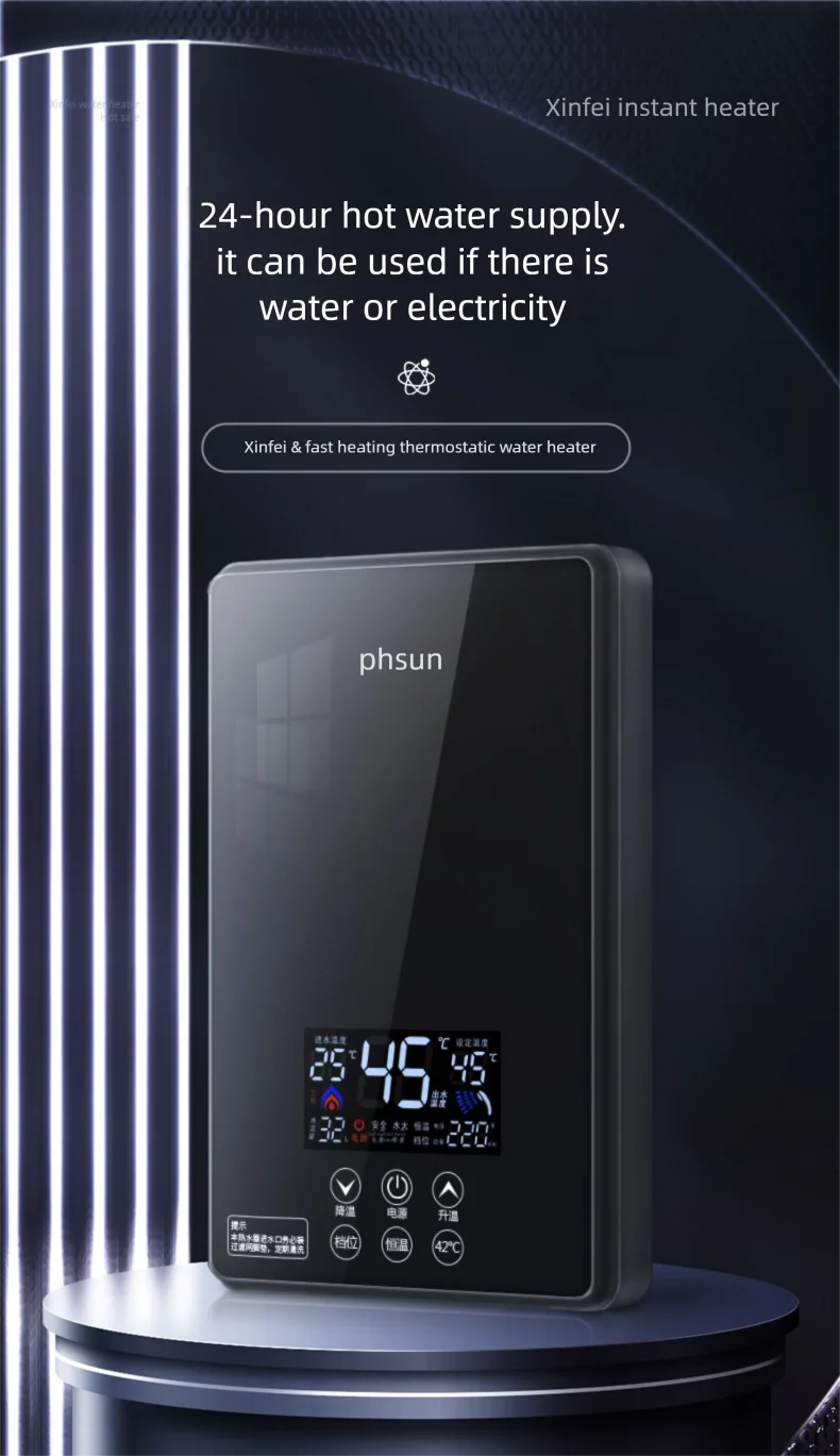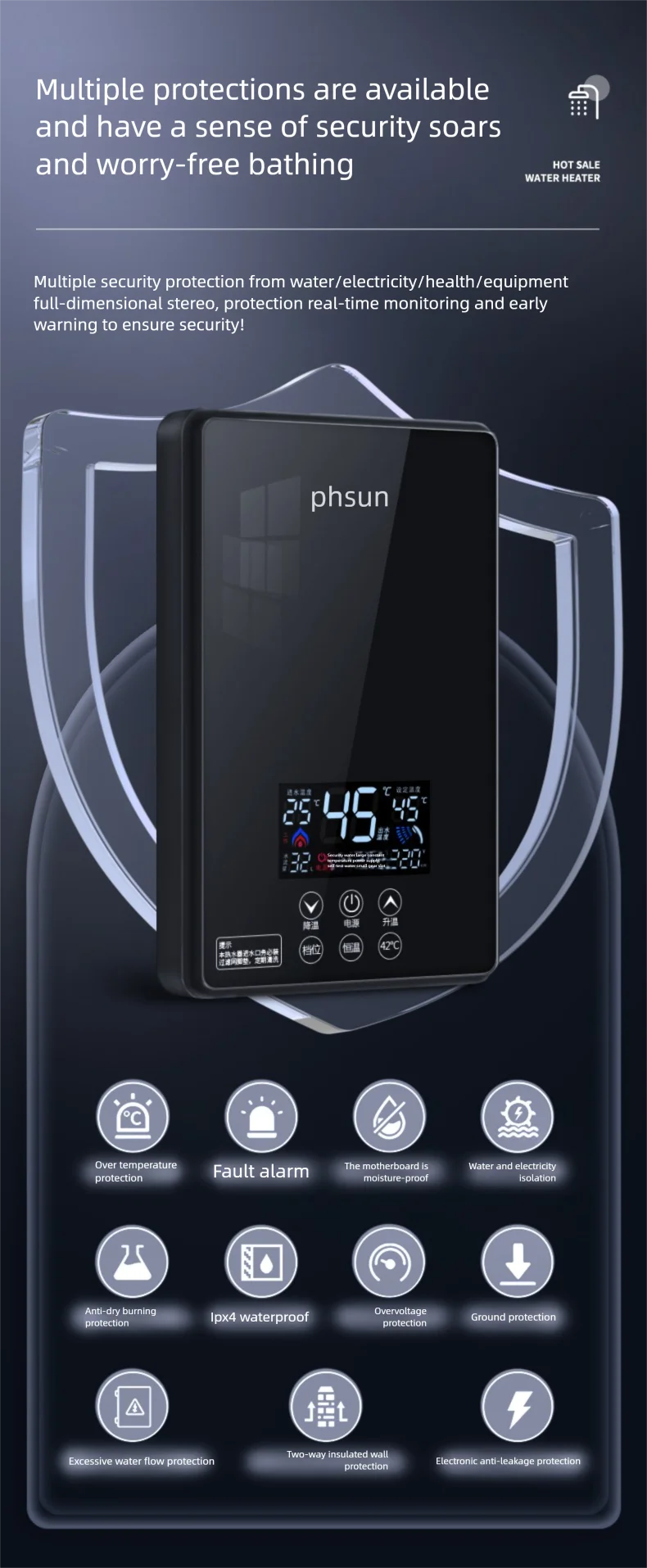 PHSUN เครื่องทําน้ําอุ่นไฟฟ้าทันที ห้องครัวในครัวเรือน ห้องน้ํา ห้องครัวขนาดเล็ก ทําน้ําร้อนทันทีให้ความร้อนเร็ว