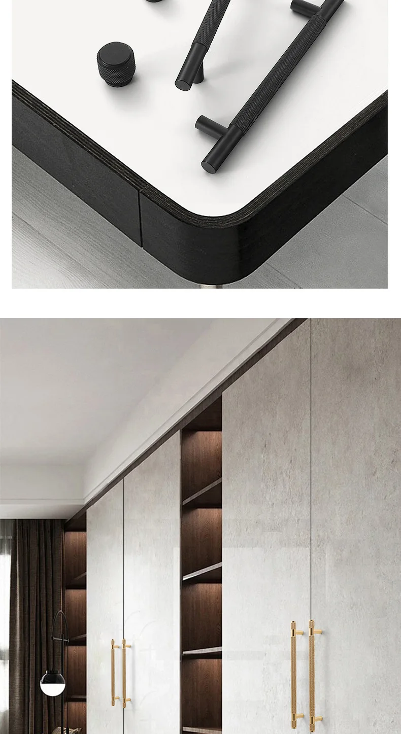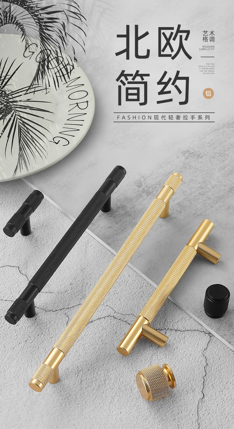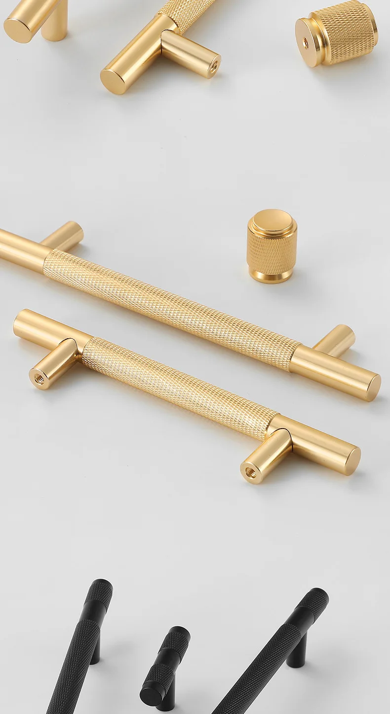 Black Gold Knurled ตู้ครัวตู้เก็บตู้จับตู้เสื้อผ้า T บาร์ตู้เสื้อผ้าประตูดึงลูกบิดประตูบ้านเฟอร์นิเจอร์ Handles