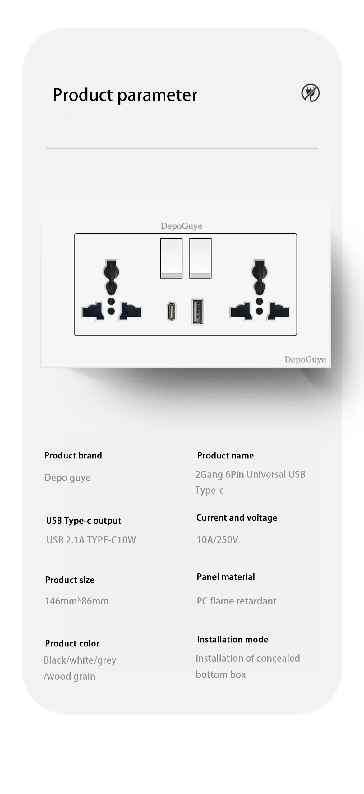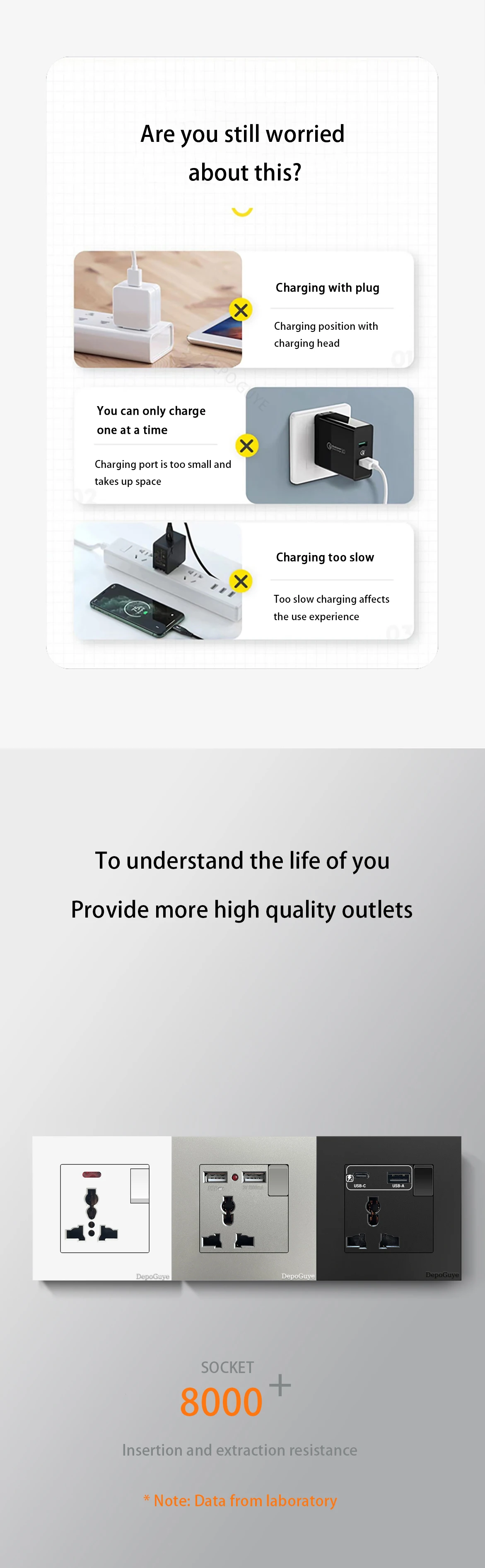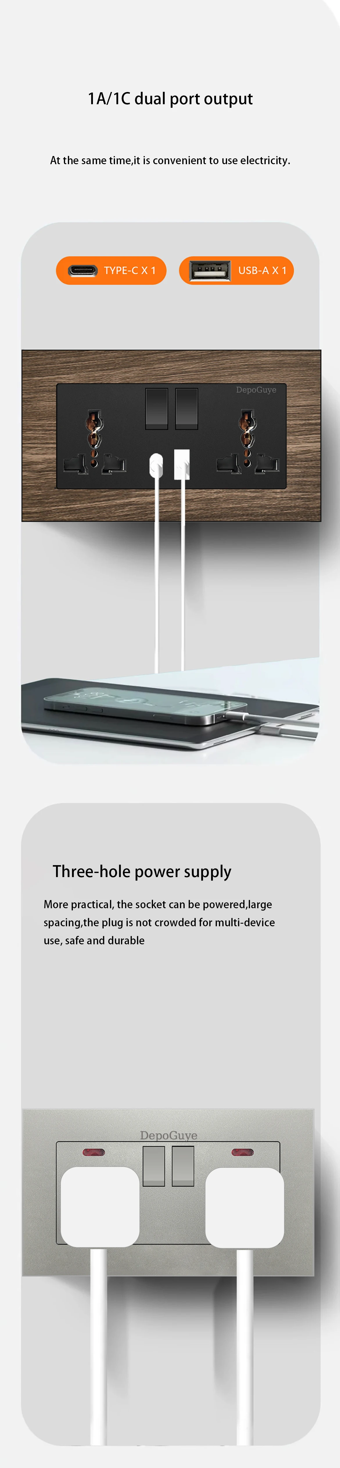EU RU FR UK ช่องเสียบ USB Type-c สากล มีการชาร์จปกติและการชาร์จแบบเร็วสองแบบ