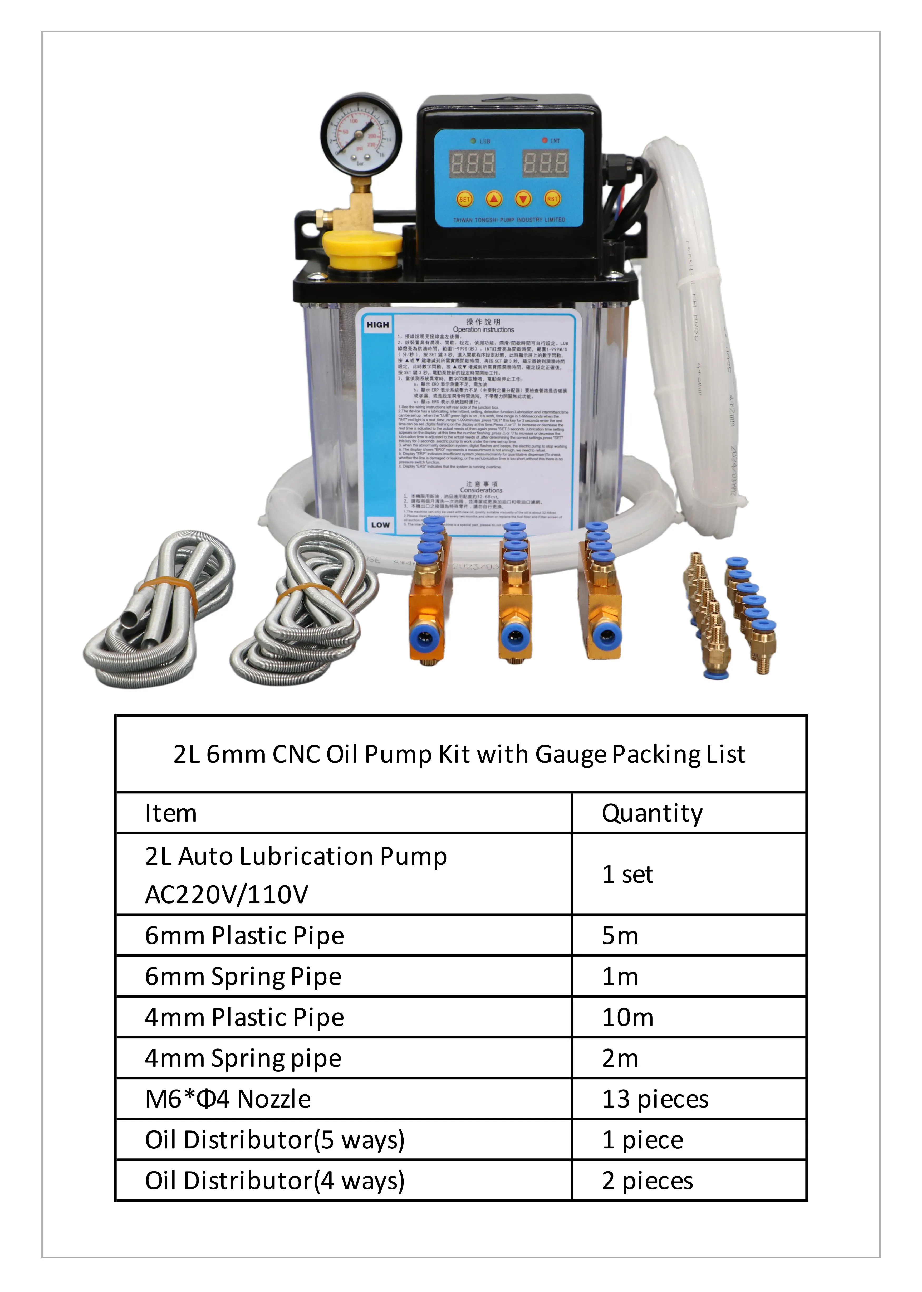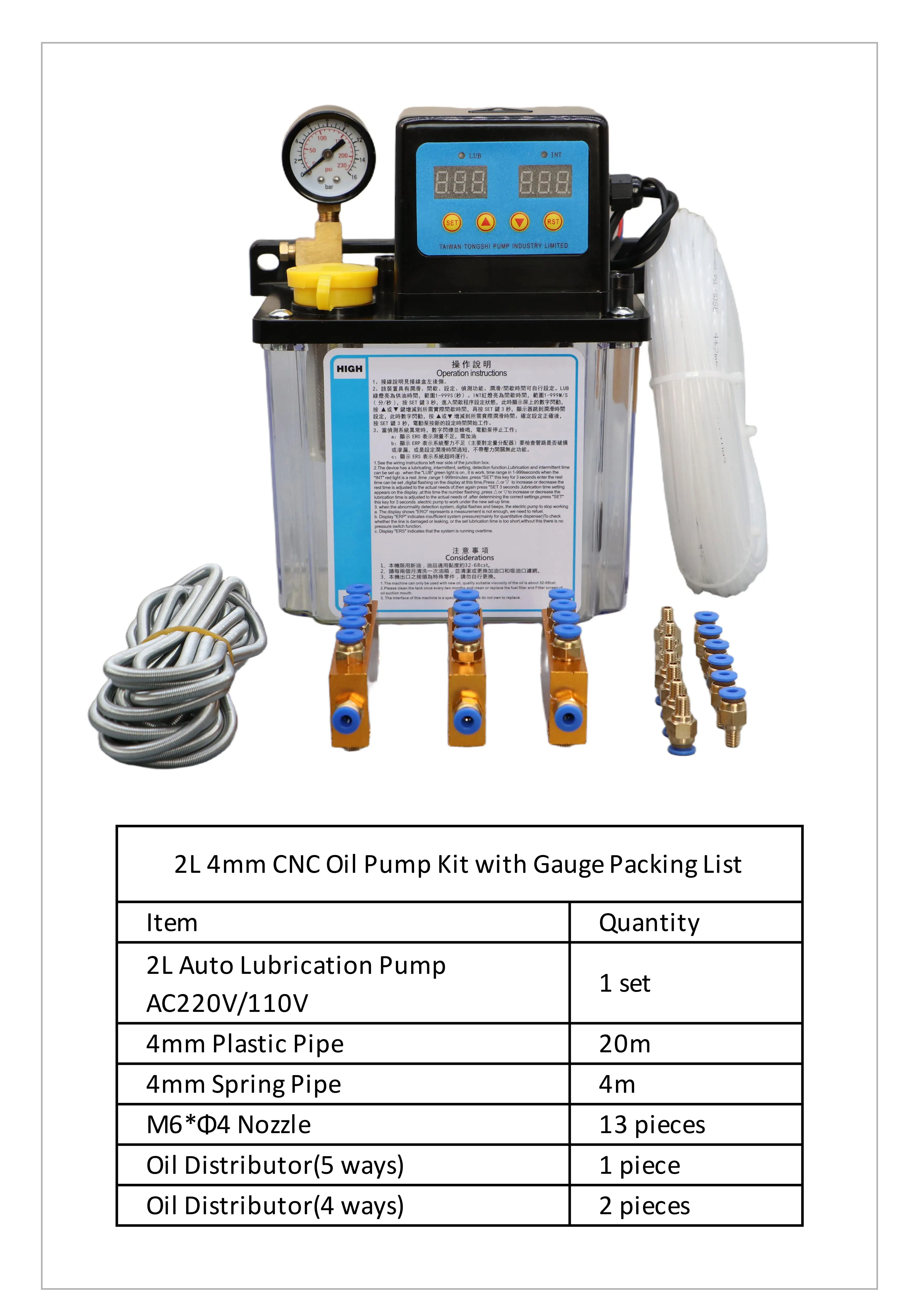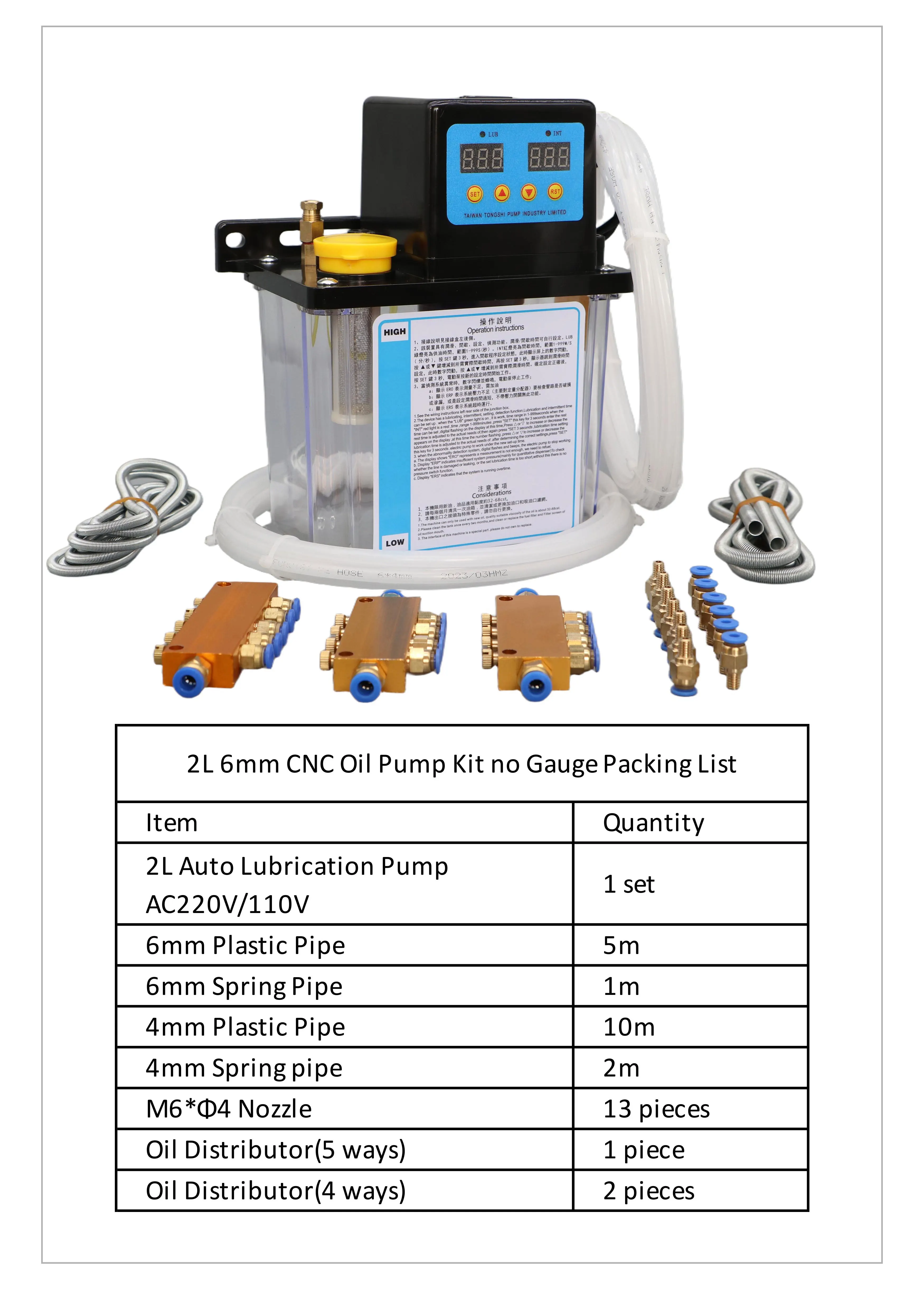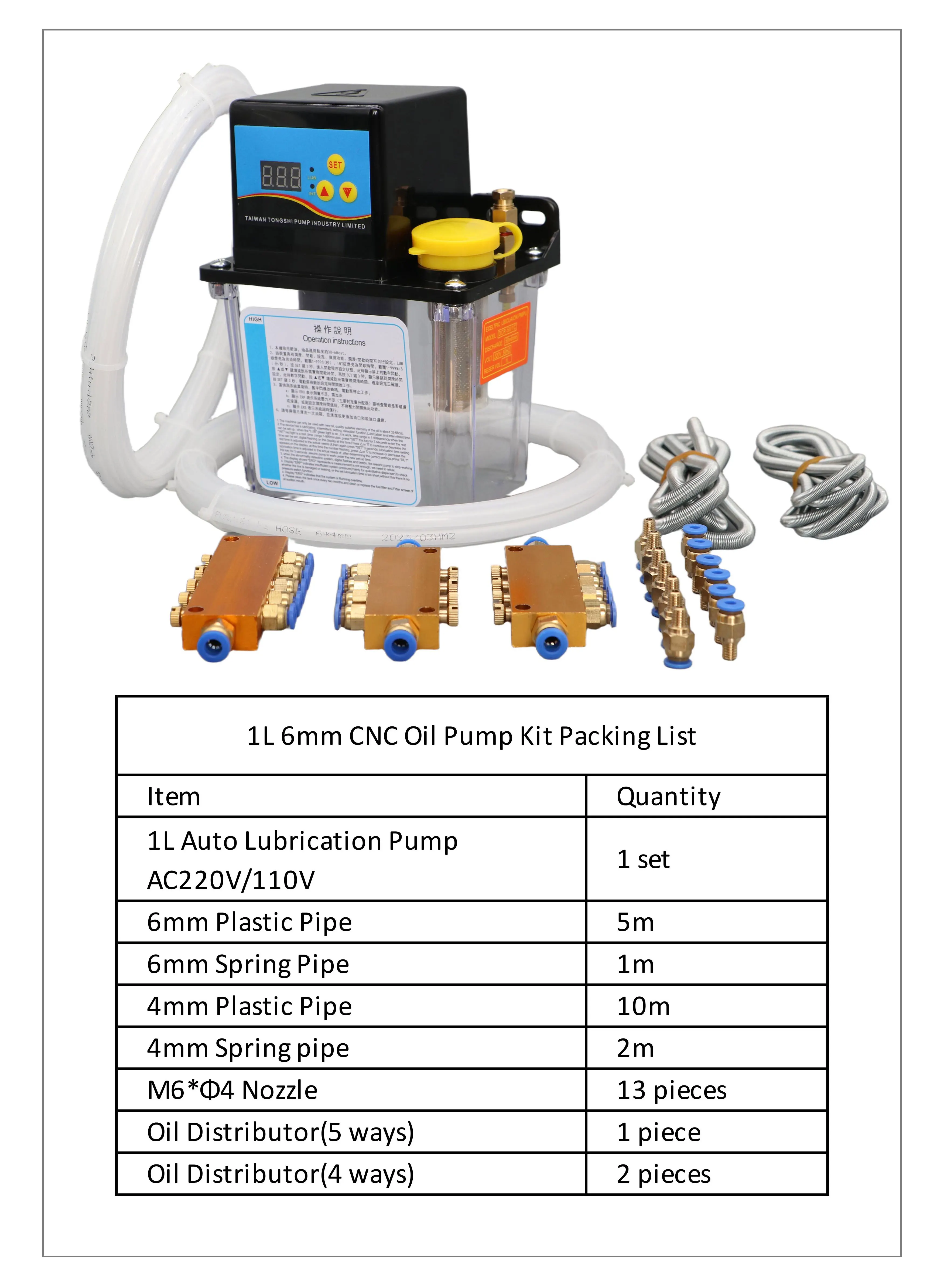 1L 2L CNC หล่อลื่นปั๊มชุด AC220V AC110V 4 มม.6 มม.อัตโนมัติหล่อลื่นน้ํามันปั๊มจาระบีไฟฟ้าสําหรับเครื่องมือเครื่อง CNC
