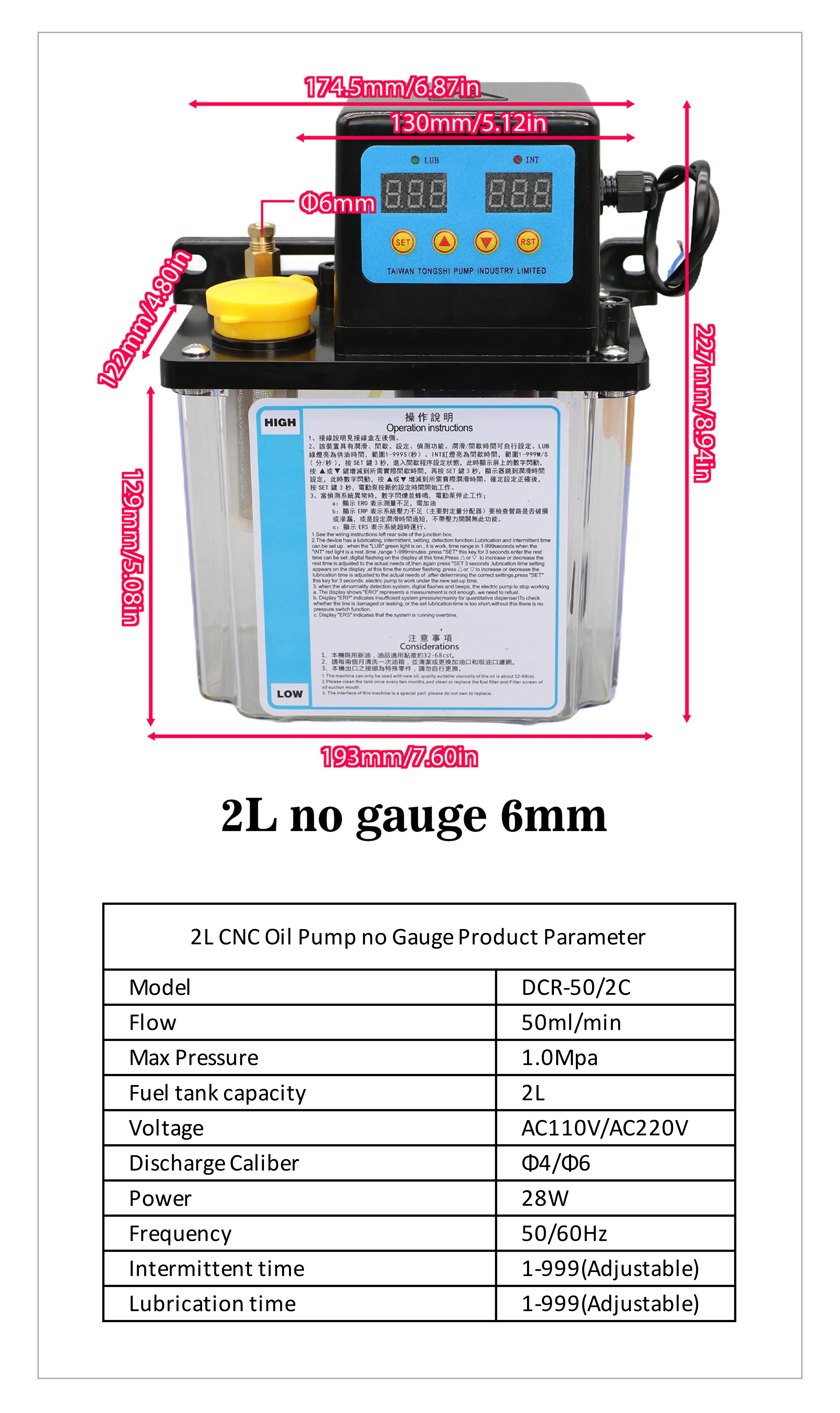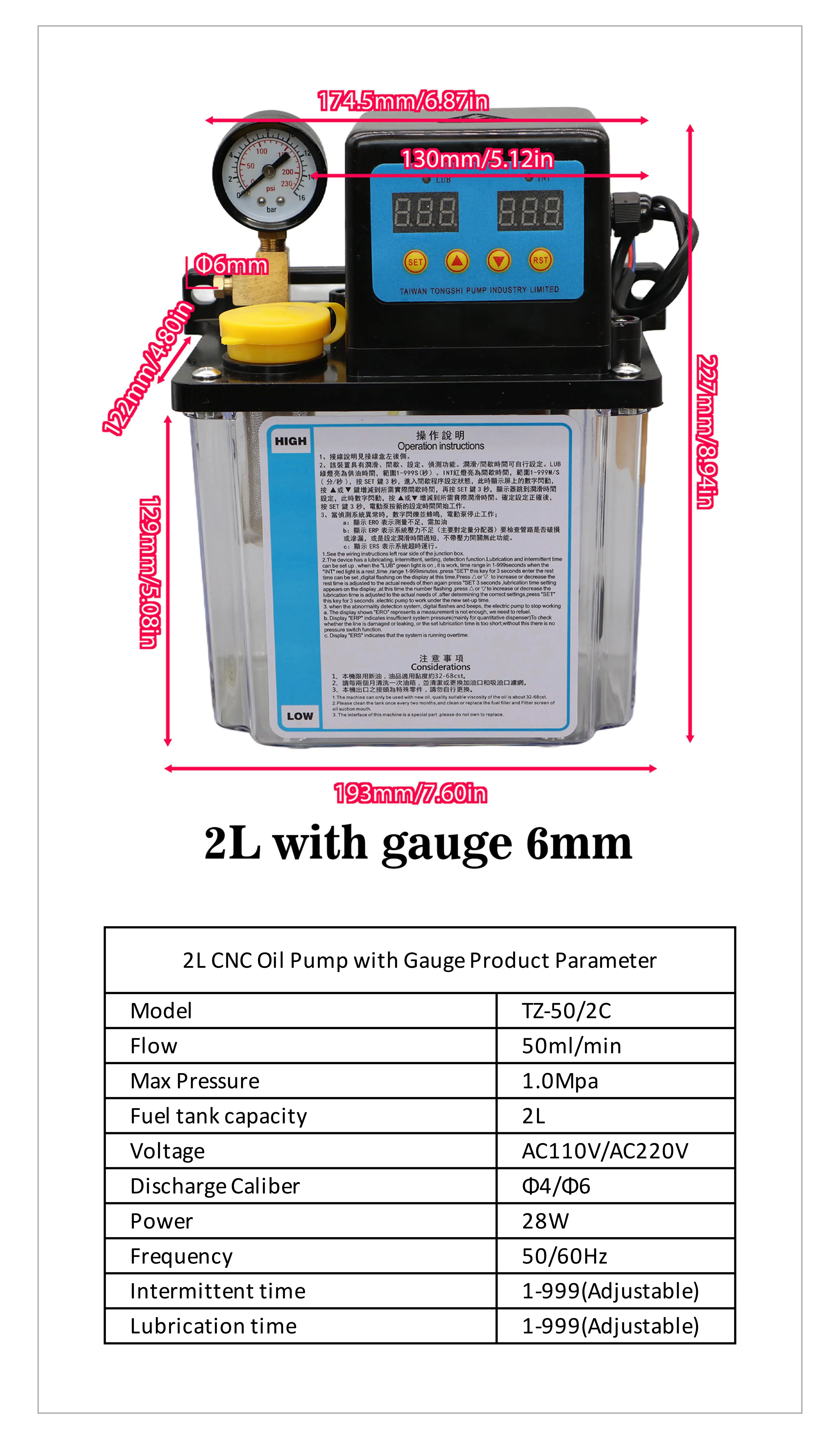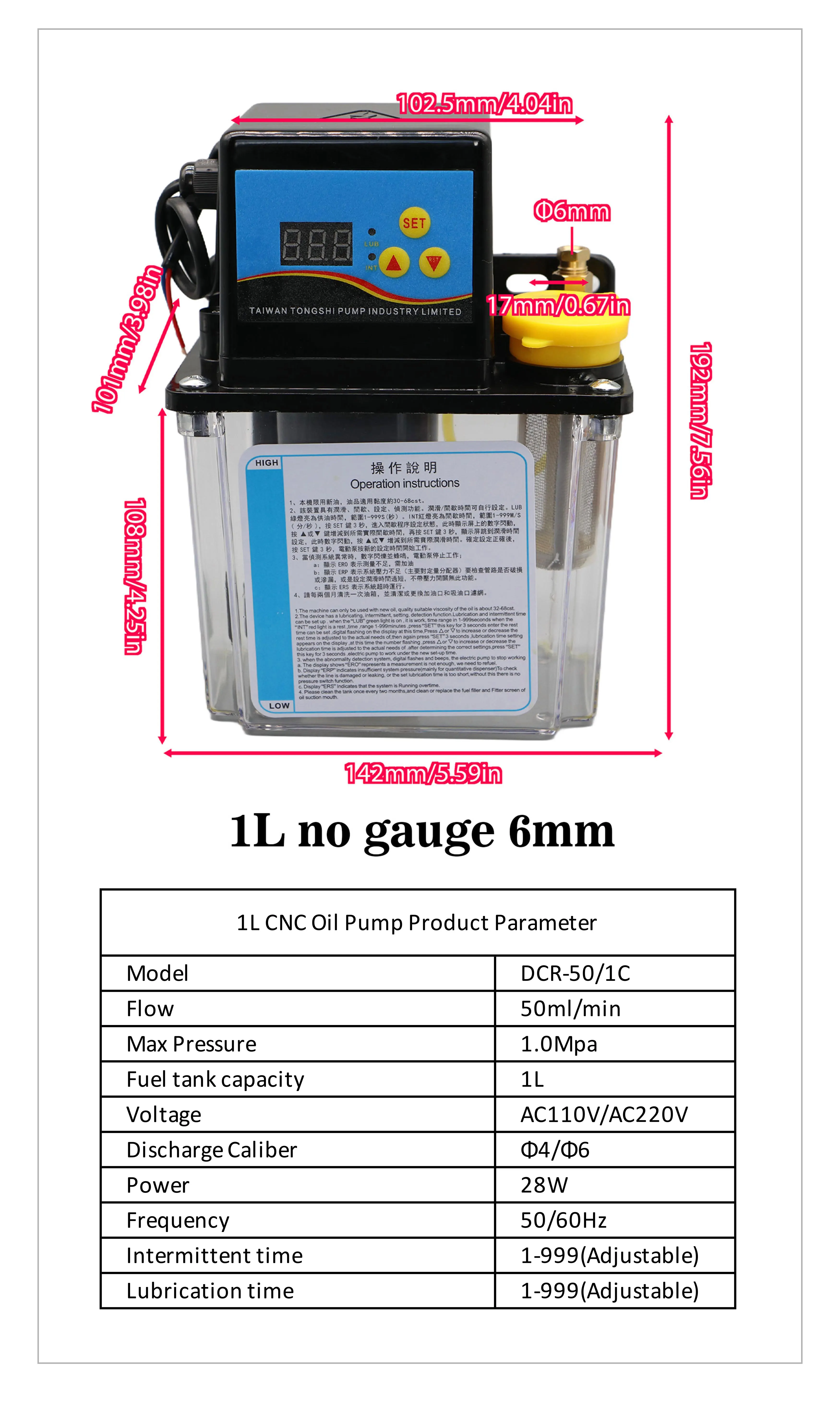 1L 2L CNC Lubricant Pump |