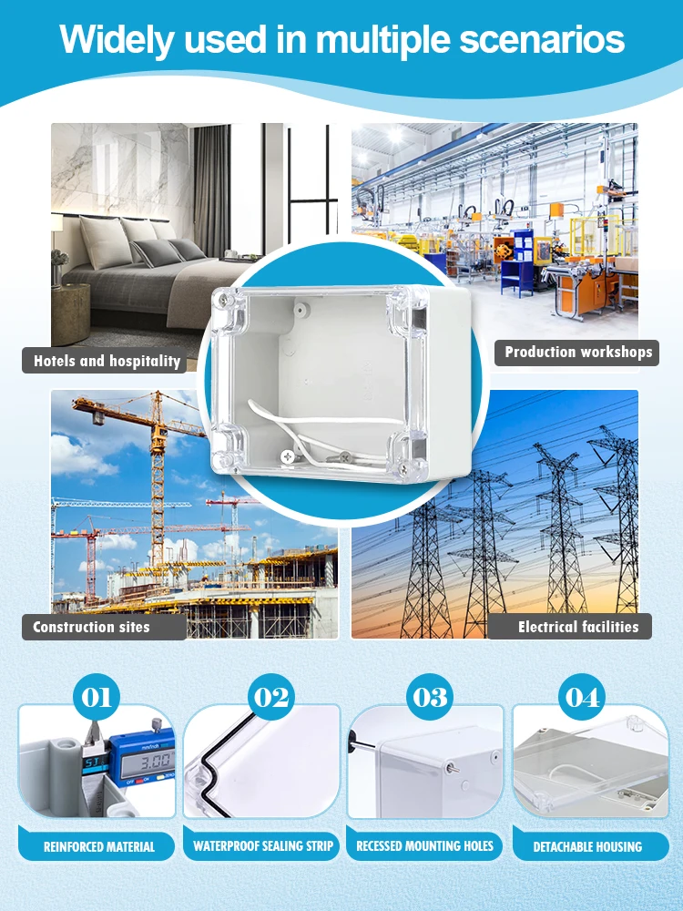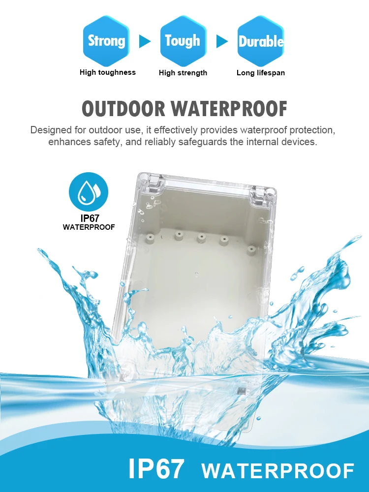 IP67 พลาสติกโปร่งใสกันน้ํากล่องสําหรับโครงการอิเล็กทรอนิกส์กลางแจ้งเครื่องมือไฟฟ้า JUNCTION HOUSING ป้องกัน