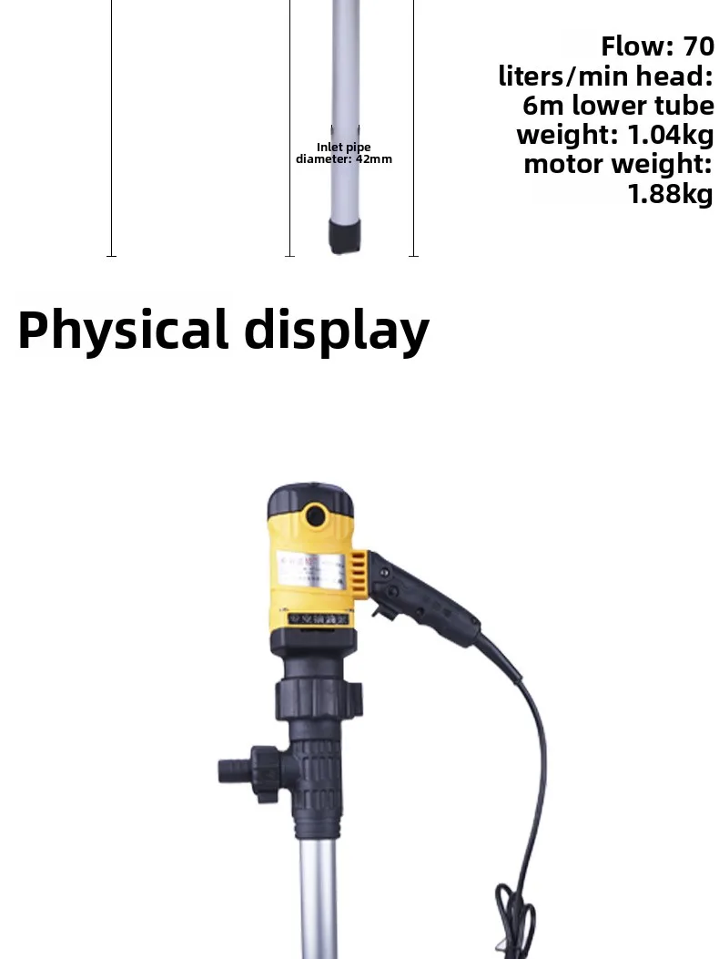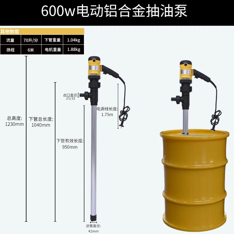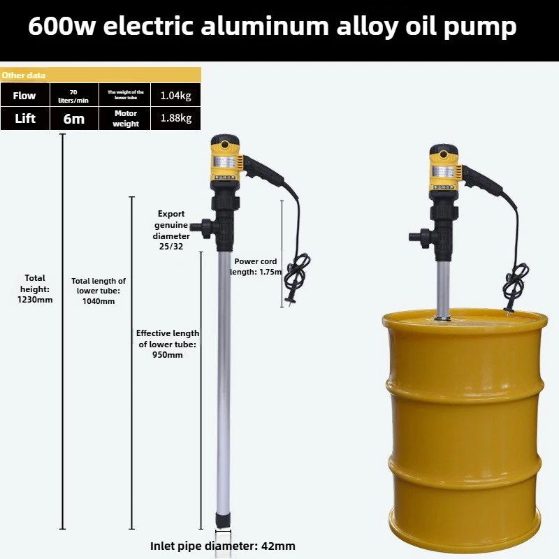 600W แบบพกพาไฟฟ้าปั๊มดูด 70L/min อลูมิเนียมปั๊มดูดไฟฟ้าปั๊มบาร์เรลข้อต่อซ็อกเก็ตการติดตั้ง