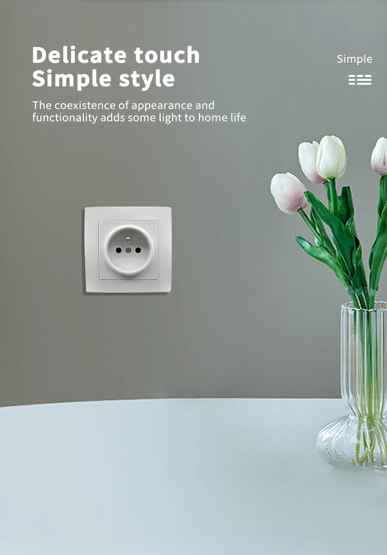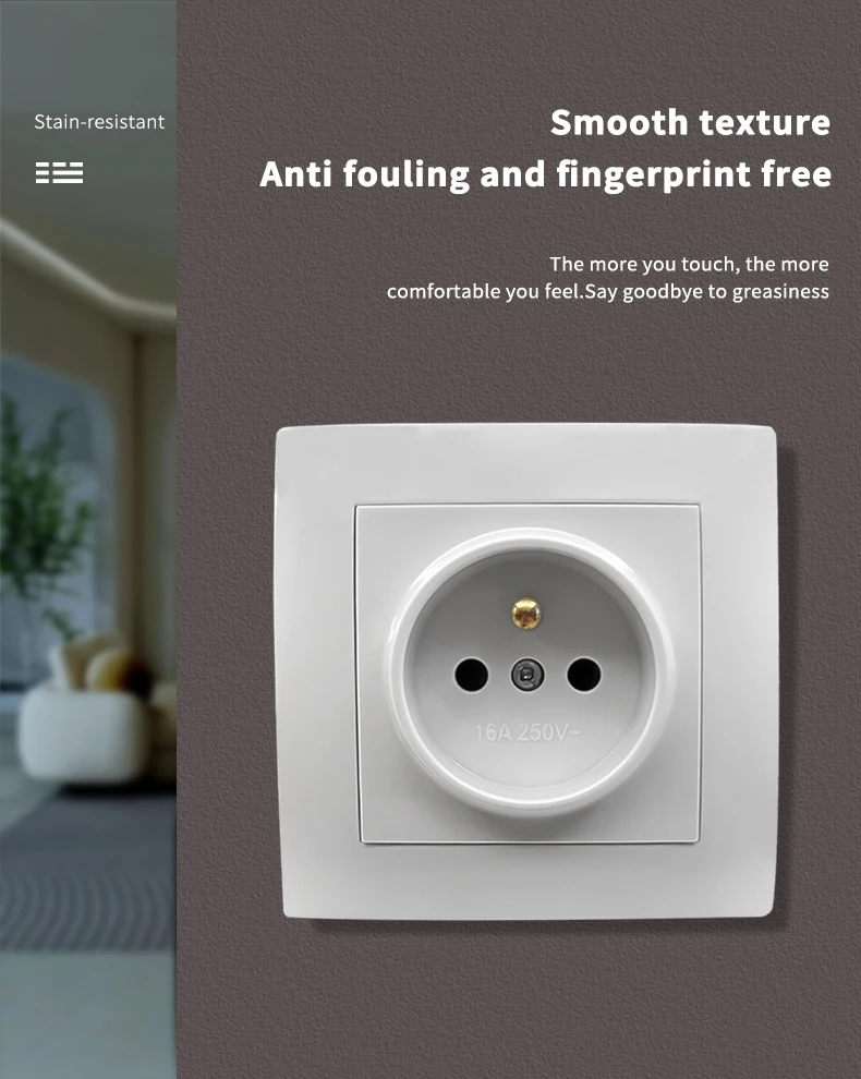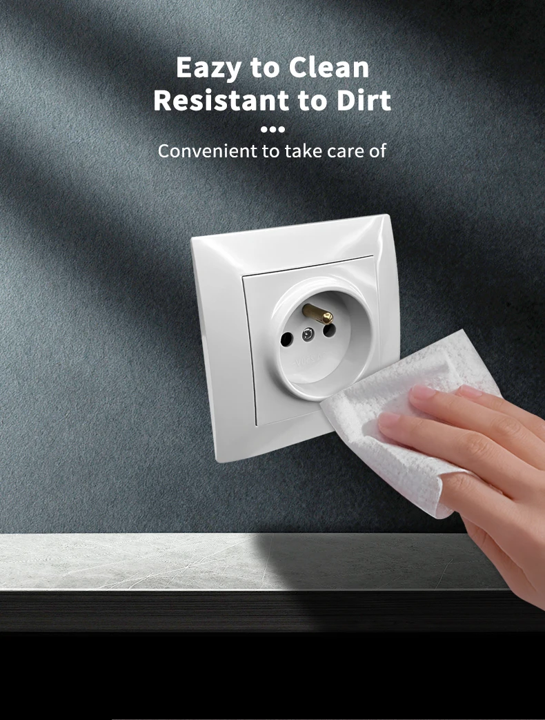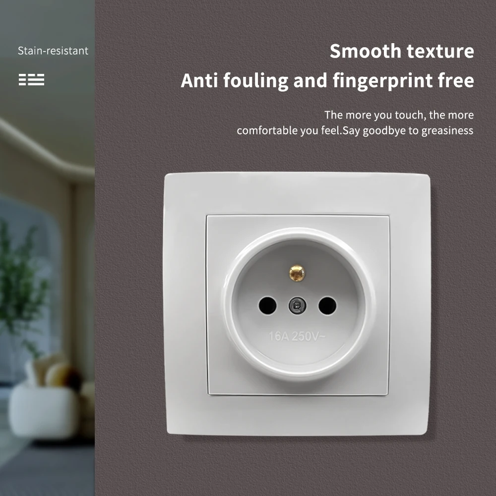 ปลั๊กไฟ WESA ปลั๊กไฟติดผนังมาตรฐานฝรั่งเศส ปลั๊กไฟฟ้า ปลั๊กฝังกราวด์มาตรฐาน บานหน้าต่างพลาสติกหน่วงไฟสีขาว