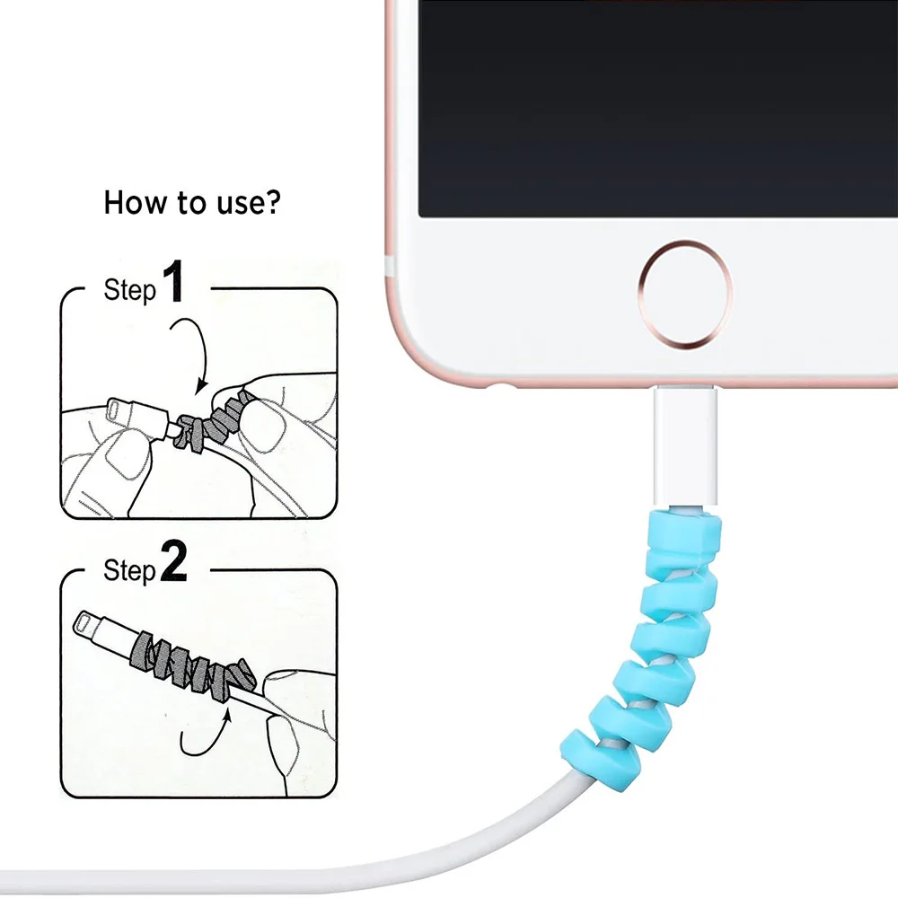 10pcs ป้องกันสายซิลิโคนสายชาร์จเกลียว Winder ปลายสายไฟ Savers สําหรับโทรศัพท์ USB Charger สายอุปกรณ์เสริม