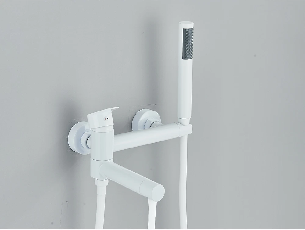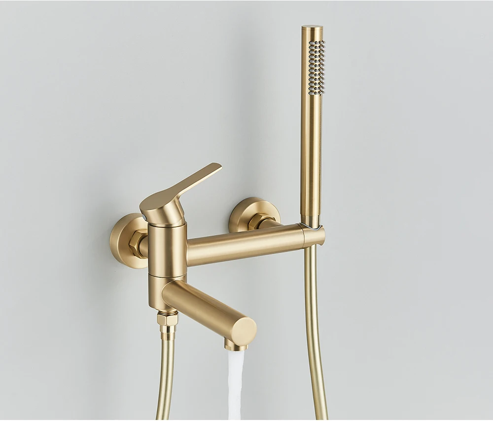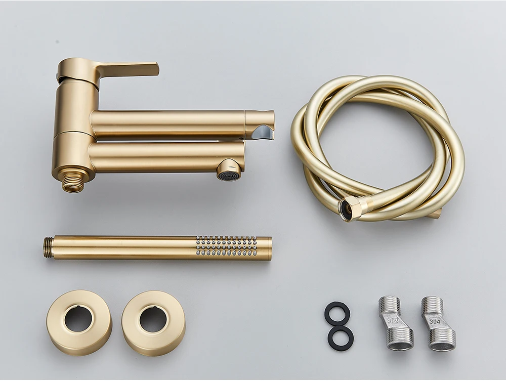 Uythner ก๊อกน้ําอ่างอาบน้ําพร้อมอ่างหมุน Spout ทองเหลืองติดผนังห้องน้ําฝักบัวแตะเต็มชุดฝักบัวสําหรับห้องน้ํา