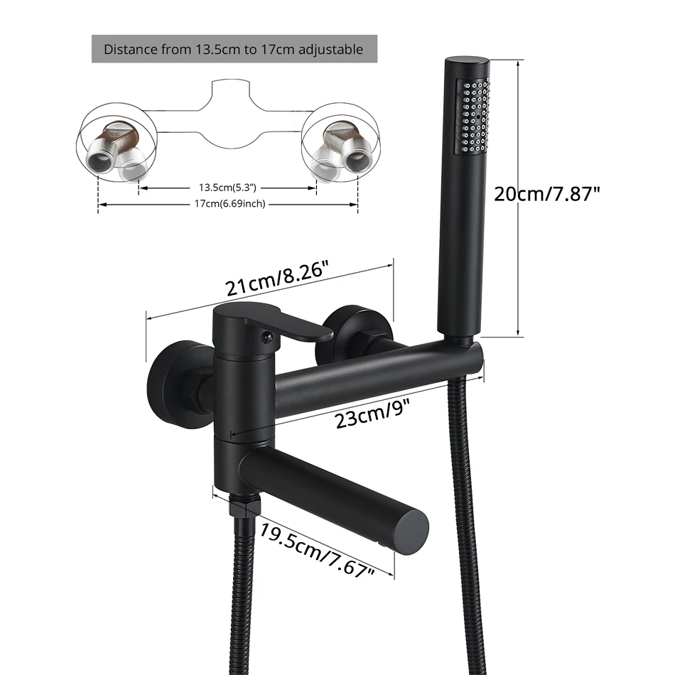 Uythner ก๊อกน้ําอ่างอาบน้ําพร้อมอ่างหมุน Spout ทองเหลืองติดผนังห้องน้ําฝักบัวแตะเต็มชุดฝักบัวสําหรับห้องน้ํา