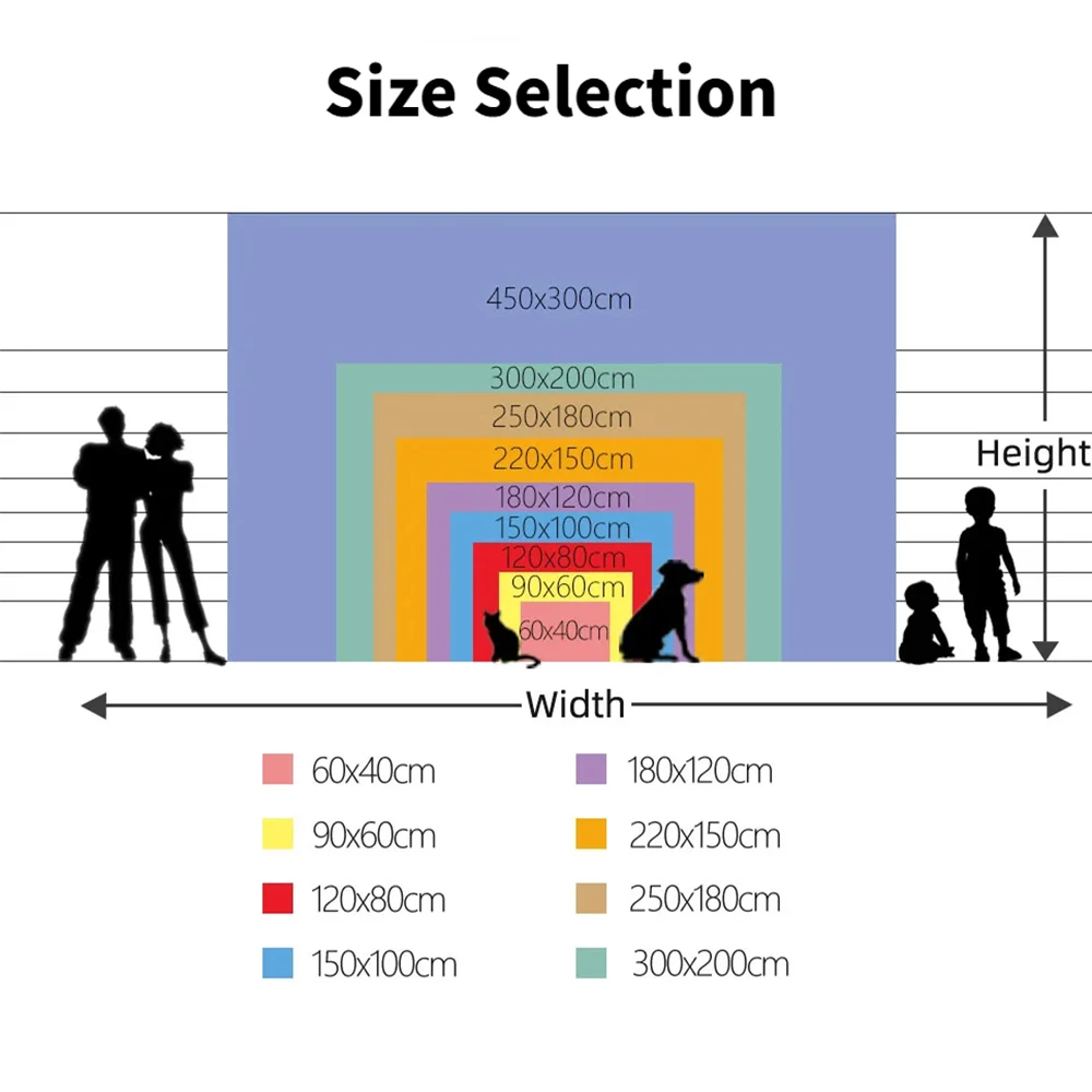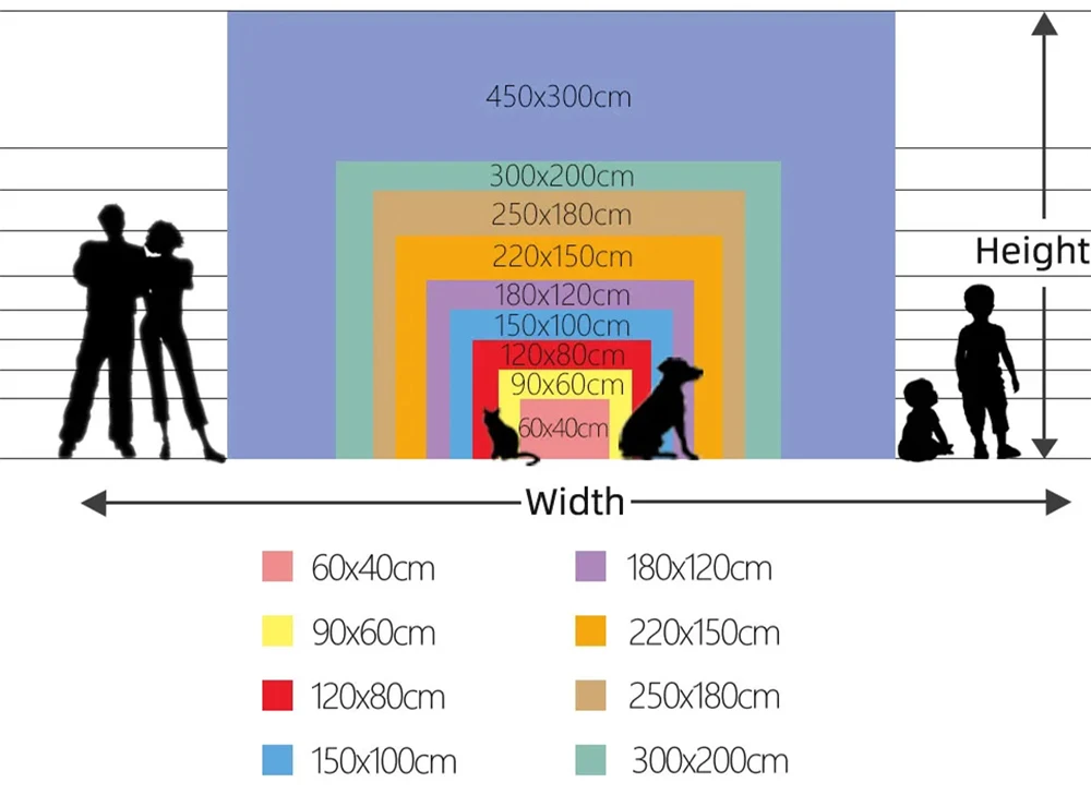 ขนาดของเราคือ กว้าง x สูง หน่วยเป็น ซม. เช่น 300×200 ซม. หมายถึง กว้าง 300 ซม. สูง 200 ซม.