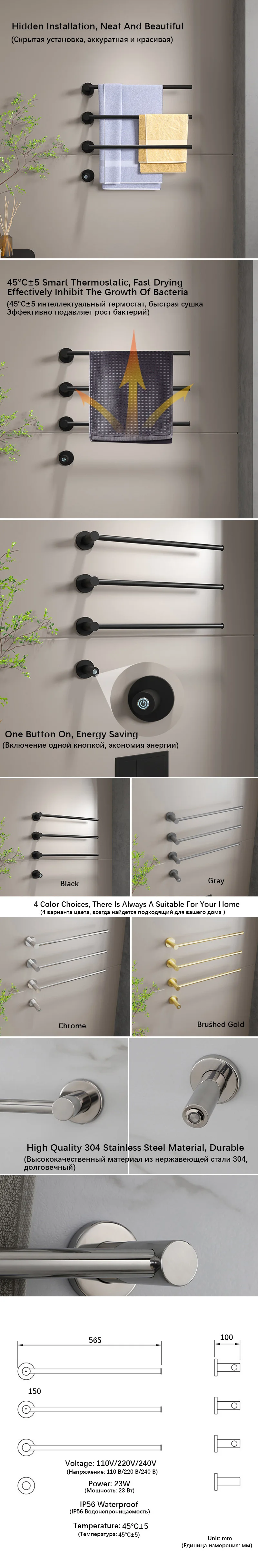 การใช้ราวแขวนผ้าไฟฟ้าสามารถทําให้ผ้าเช็ดตัว ผ้าเช็ดตัว เสื้อผ้าเด็ก ฯลฯ แห้งได้อย่างรวดเร็วในช่วงฤดูชื้นและฝน ลดการแพร่พันธุ์ของแบคทีเรียได้อย่างมีประสิทธิภาพและดูแลสุขภาพของผิวในฤดูหนาวที่หนาวเย็น คุณยังสามารถใช้ผ้าแห้งที่นุ่มและอบอุ่นได้ทุกวัน สนุกกับชีวิตที่ดี!