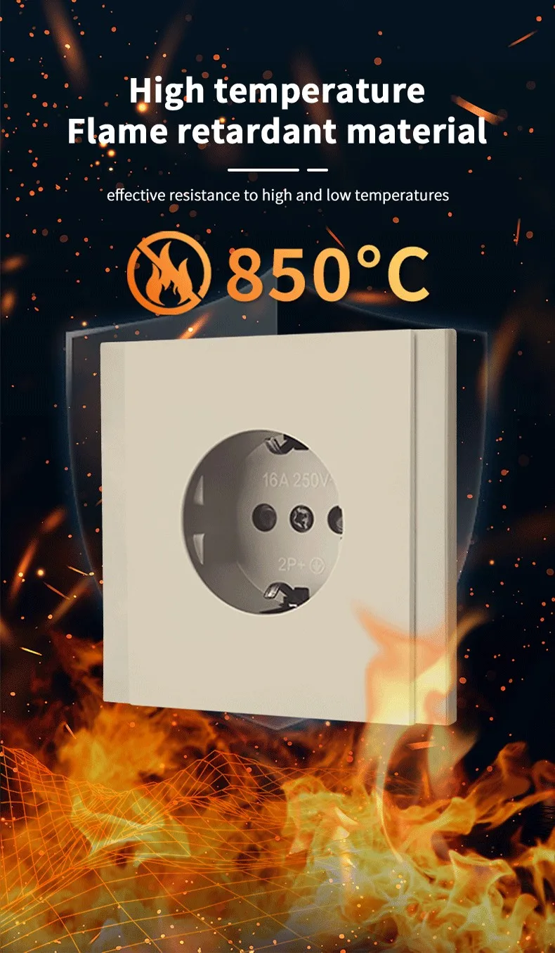 เต้ารับไฟฟ้าสีขาว มาตรฐาน EU ทนไฟ แบบฝังผนัง พร้อมระบบป้องกันไฟฟ้ารั่ว 250V คลาสสิก ทำจากพลาสติกเคลือบสี 250V
