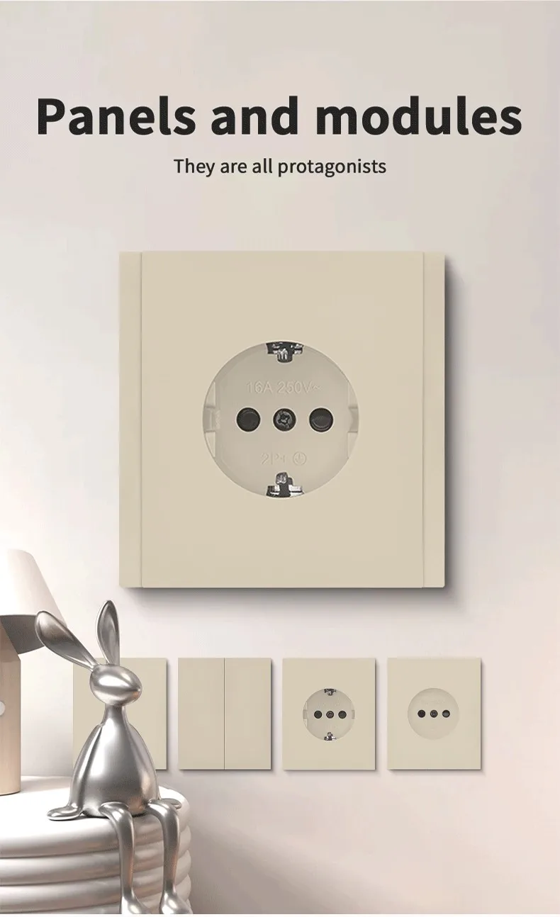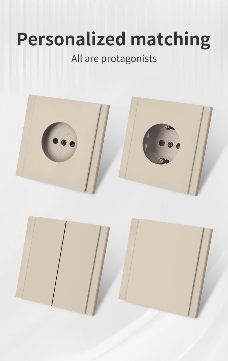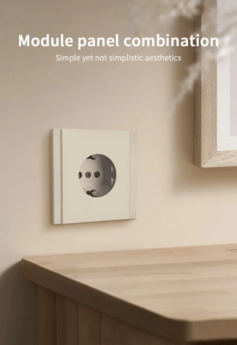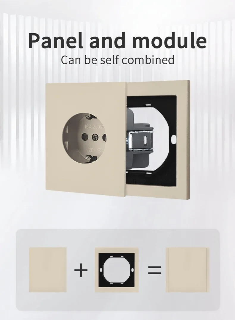 Wallpad DIY โมดูลแผงอะคริลิคสีขาว Gold Border Wall Power Socket ปลั๊กไฟฟ้าฟังก์ชั่น Key พอร์ต USB 110 220V