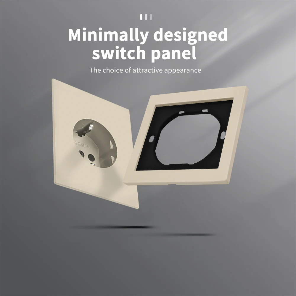 Wallpad DIY โมดูลแผงอะคริลิคสีขาว Gold Border Wall Power Socket ปลั๊กไฟฟ้าฟังก์ชั่น Key พอร์ต USB 110 220V