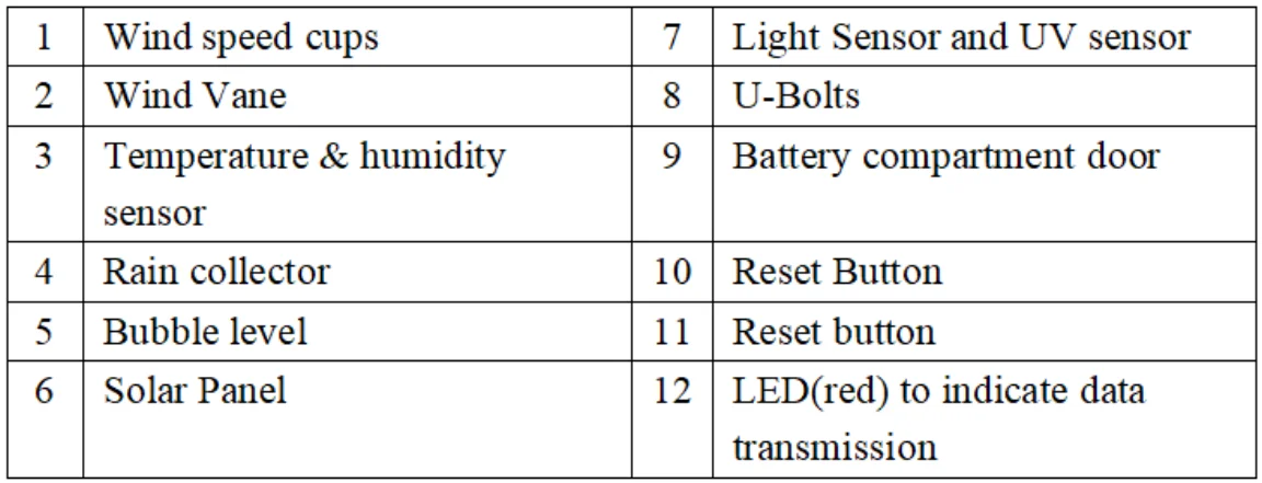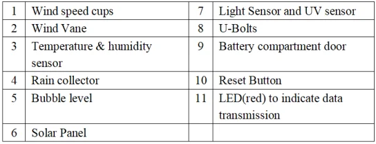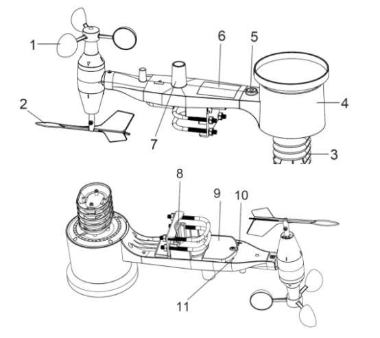 * อาร์เรย์เซ็นเซอร์กลางแจ้งวัดความเร็วลม ทิศทางลม อุณหภูมิ ความชื้น ความเร็วลม ทิศทางลม ปริมาณน้ำฝน UVI