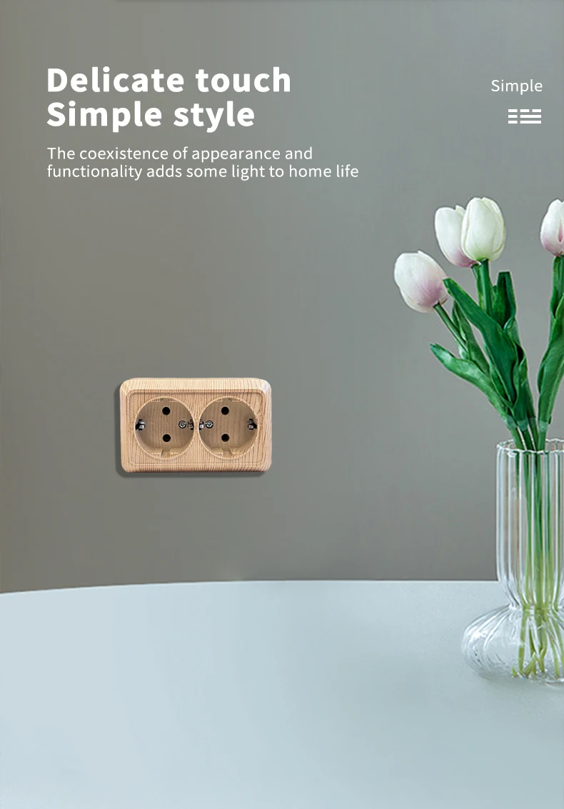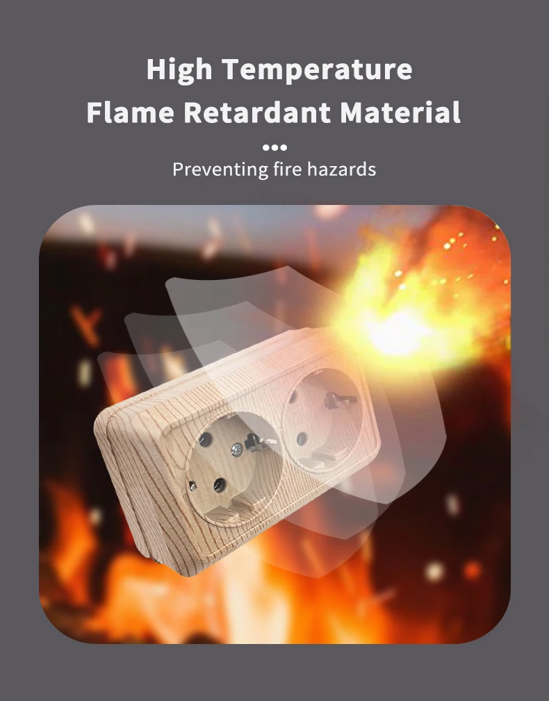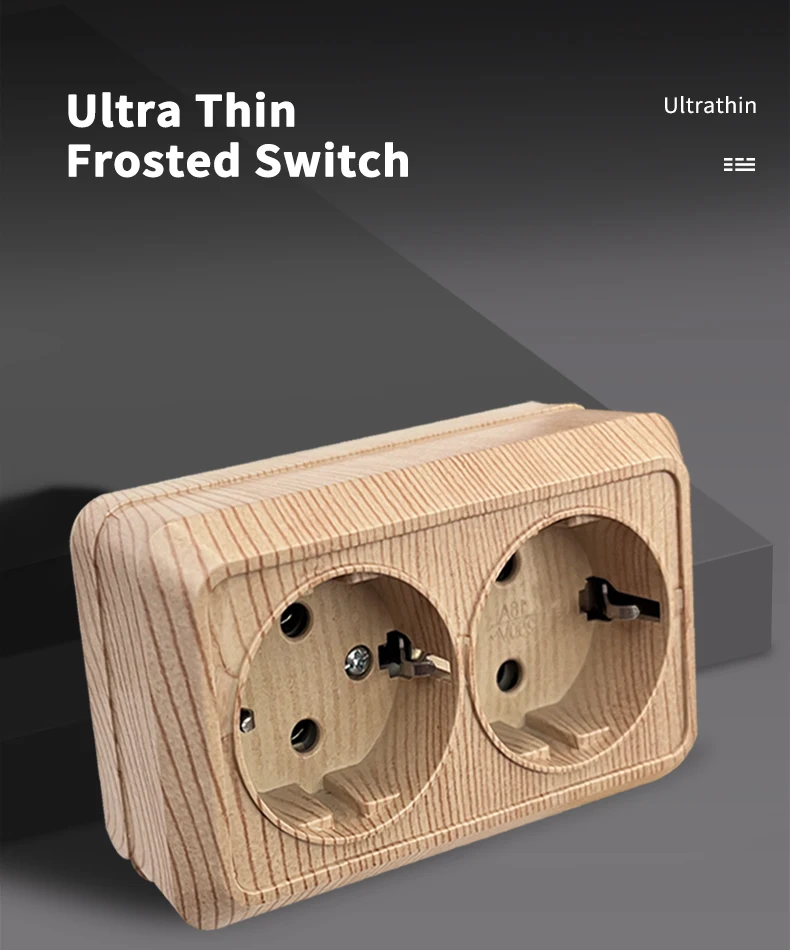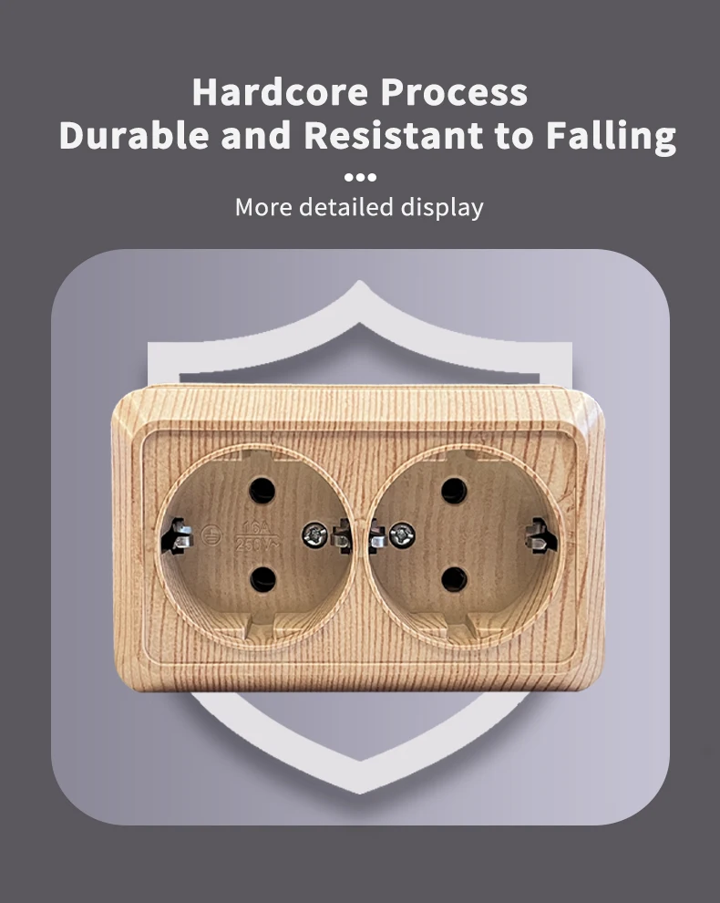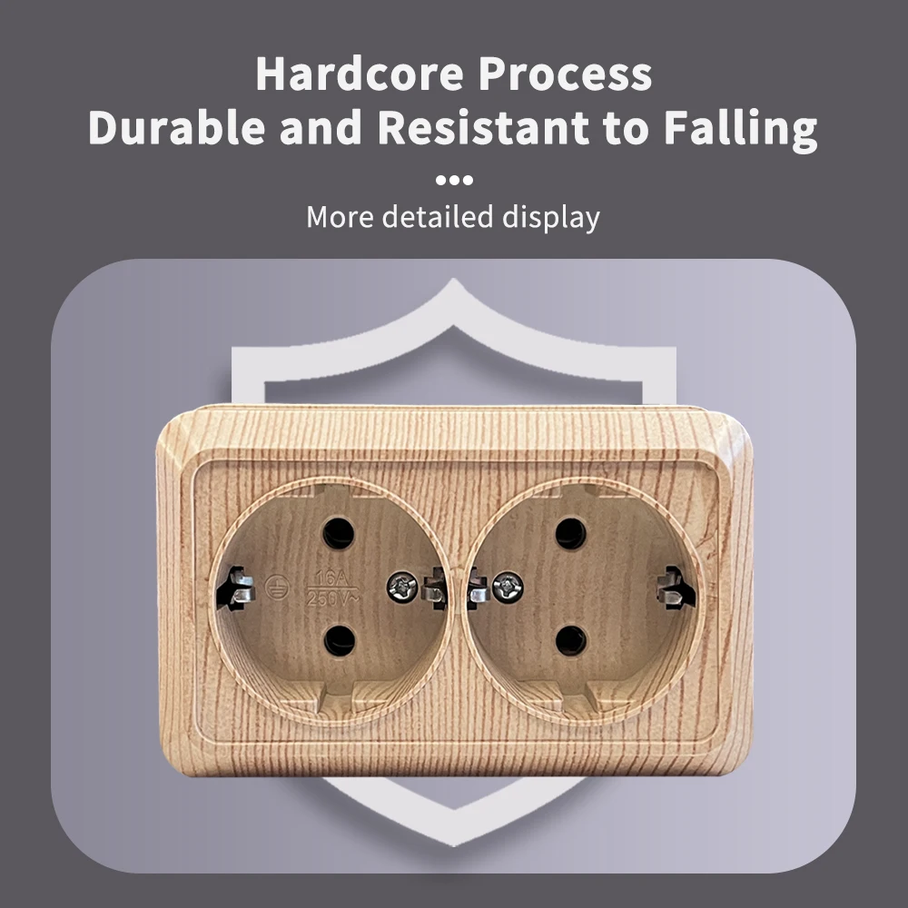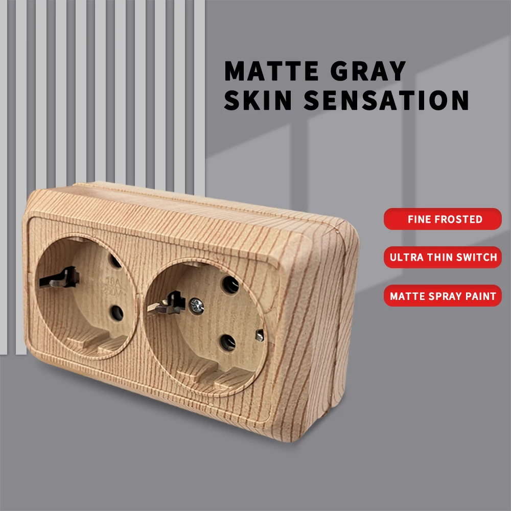 สีไม้พื้นผิวผนัง 2 ซ็อกเก็ตปลั๊ก EU ภายนอกปลั๊กไฟฟ้าพร้อม Ground Outdoor Power Socket พลาสติกหน่วงไฟ