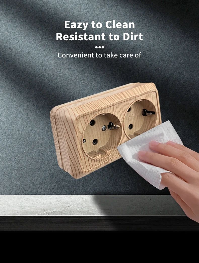 สีไม้พื้นผิวผนัง 2 ซ็อกเก็ตปลั๊ก EU ภายนอกปลั๊กไฟฟ้าพร้อม Ground Outdoor Power Socket พลาสติกหน่วงไฟ จาก 5 รีวิว