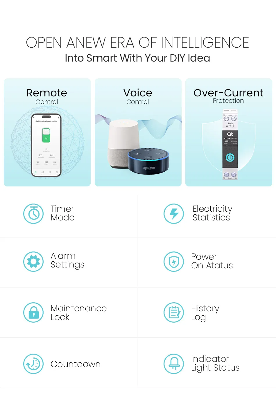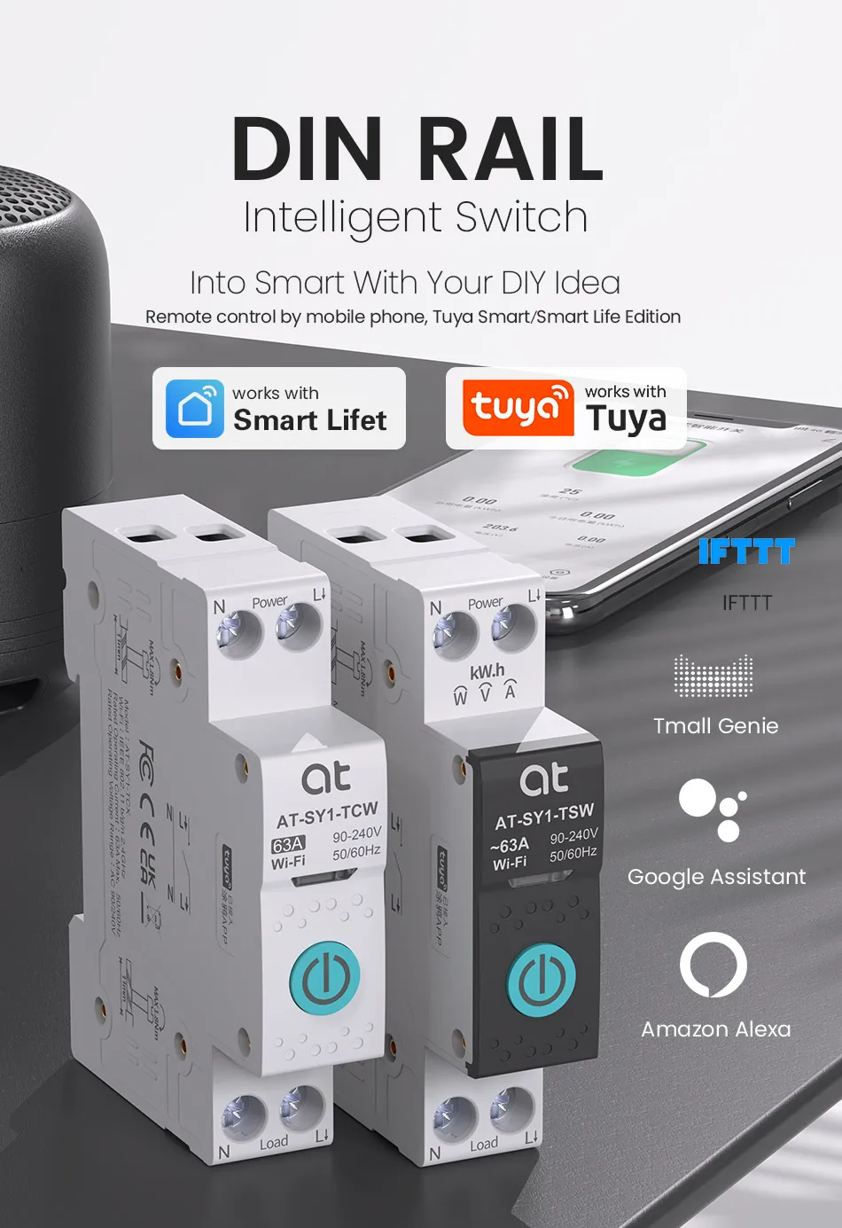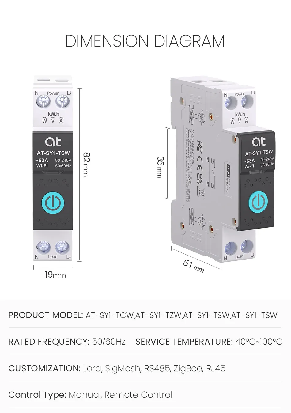 เบรกเกอร์อัจฉริยะ TUYA WiFi/ZigBee ป้องกันกระแสเกิน แรงดันต่ำ พร้อมมิเตอร์วัดพลังงาน 63A สวิตช์ควบคุมระยะไกล