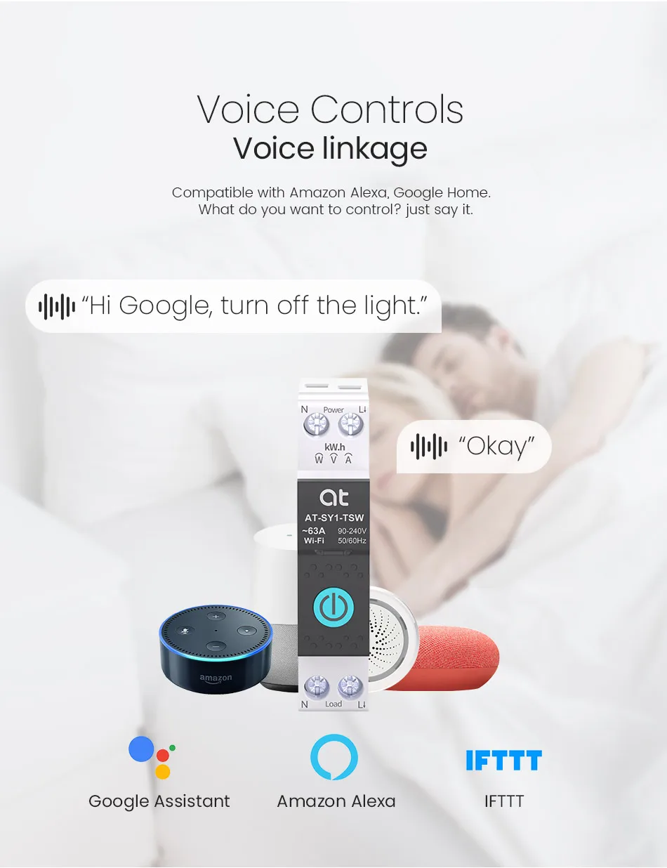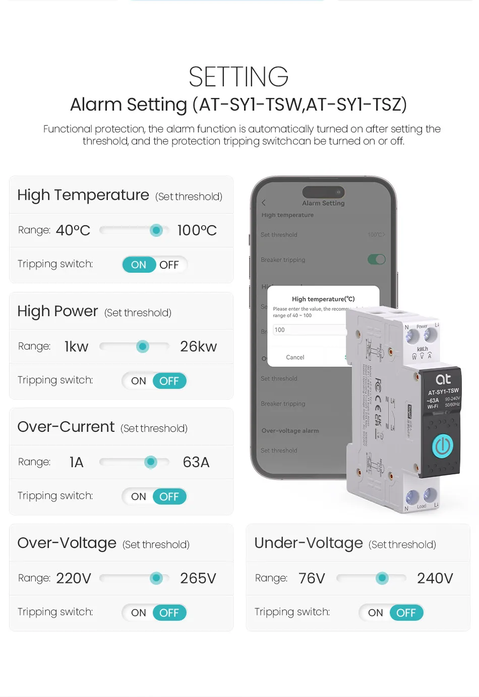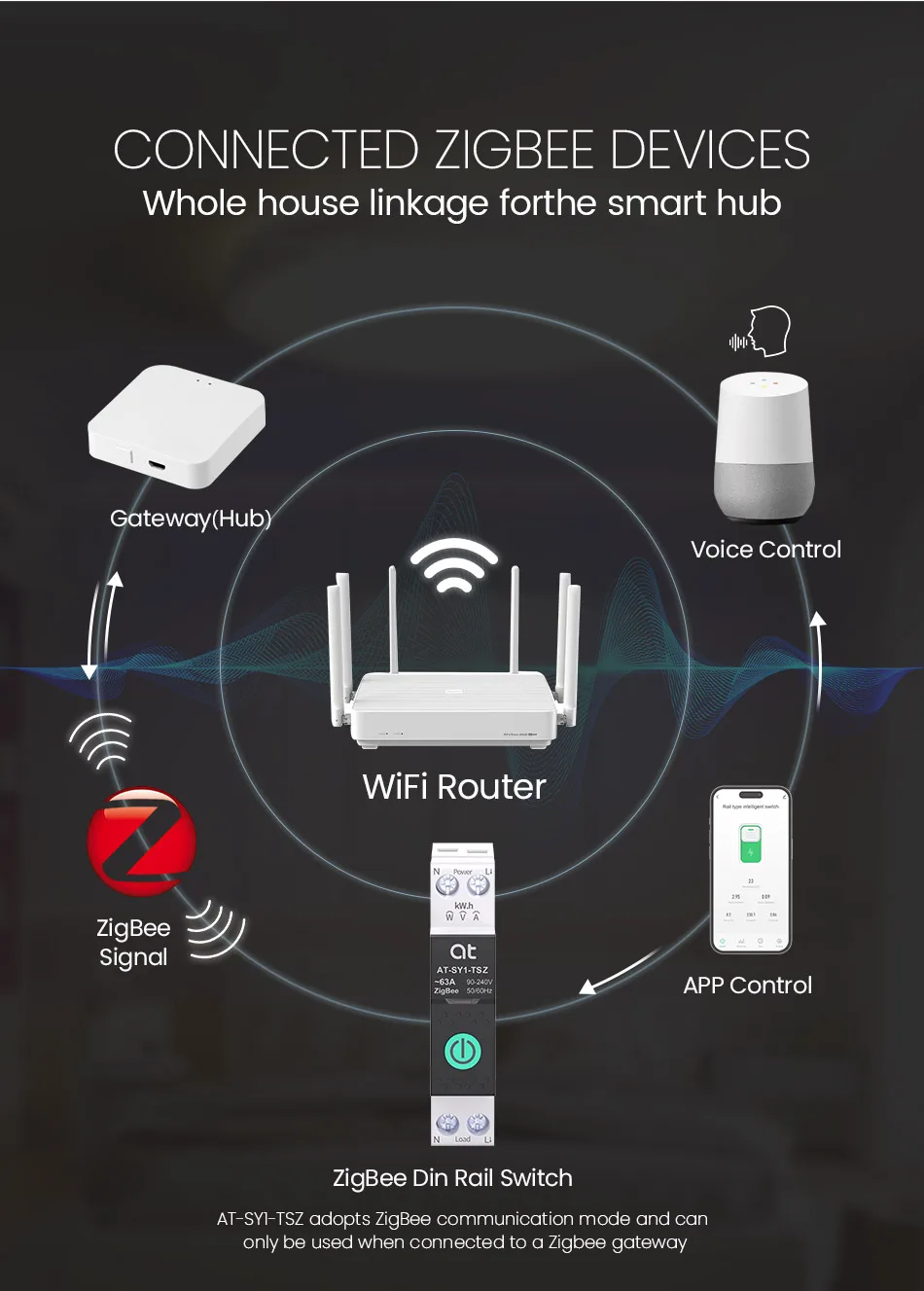 เบรกเกอร์อัจฉริยะ TUYA WiFi/ZigBee ป้องกันกระแสเกิน แรงดันต่ำ พร้อมมิเตอร์วัดพลังงาน 63A สวิตช์ควบคุมระยะไกล