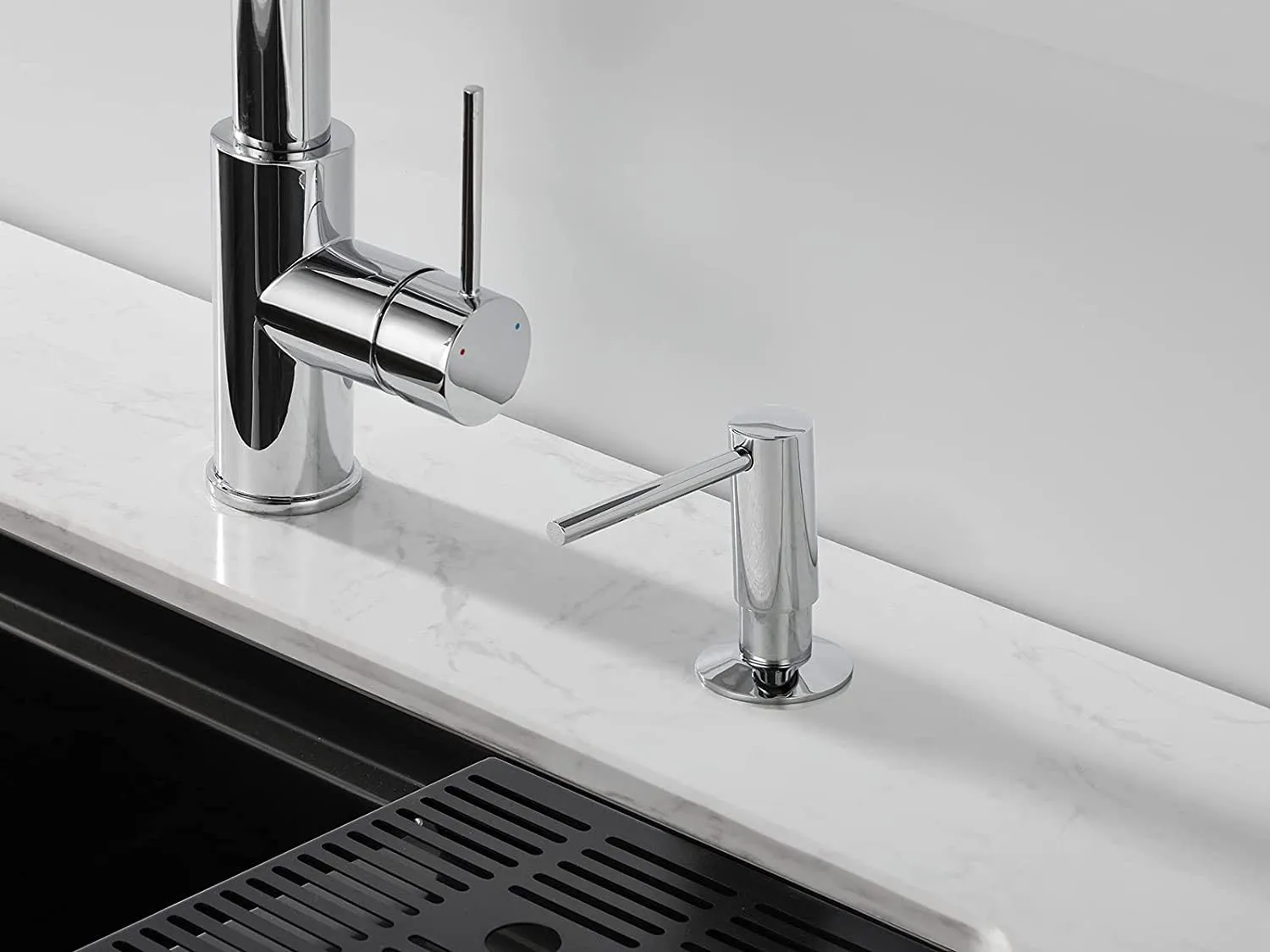 ปั๊มจ่ายสบู่และน้ำยาล้างจานในตัวพร้อมท่อต่อขยายยาว 47 นิ้ว – แบบเติมด้านบนติดตั้งบนเคาน์เตอร์