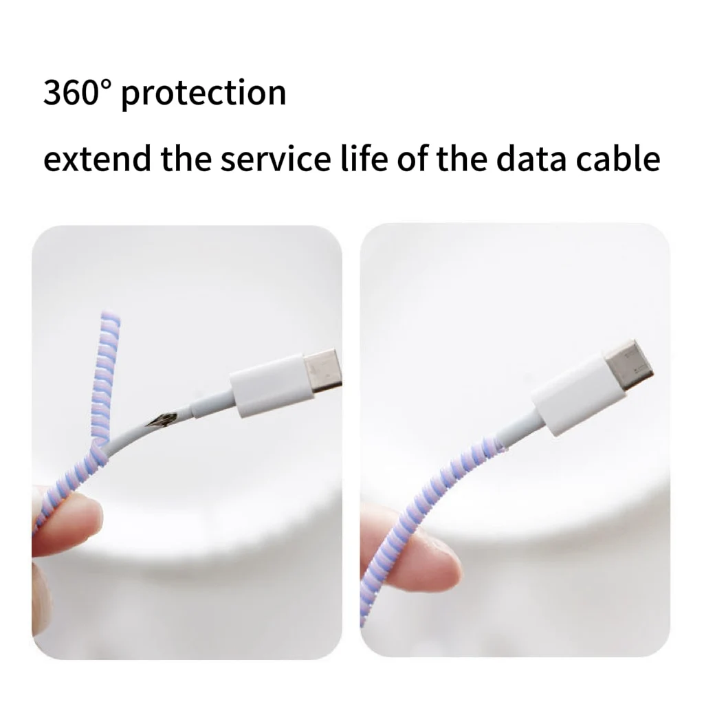 ชุบ 1.4M TPU เกลียว USB สายชาร์จป้องกันสายไฟ Winder สําหรับ iPhone 8 7 6 5 หูฟังป้องกัน