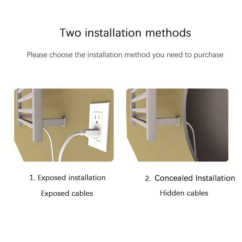 ผ้าเช็ดตัวไฟฟ้าอุ่นในตัวจับเวลาสําหรับห้องน้ําติดผนังผ้าเช็ดตัวเครื่องทําความร้อน Plug-in/สายไฟฟ้าอุ่นผ้าเช็ดตัว Rack