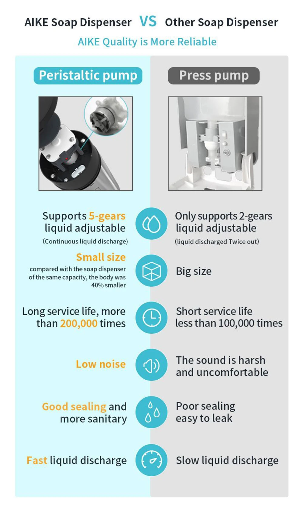 เครื่องจ่ายสบู่เหลวอัตโนมัติ AIKE รุ่น AK1205 แบบติดผนัง สำหรับใช้ในเชิงพาณิชย์ ความจุขนาดใหญ่ 750 มล./800 มล.