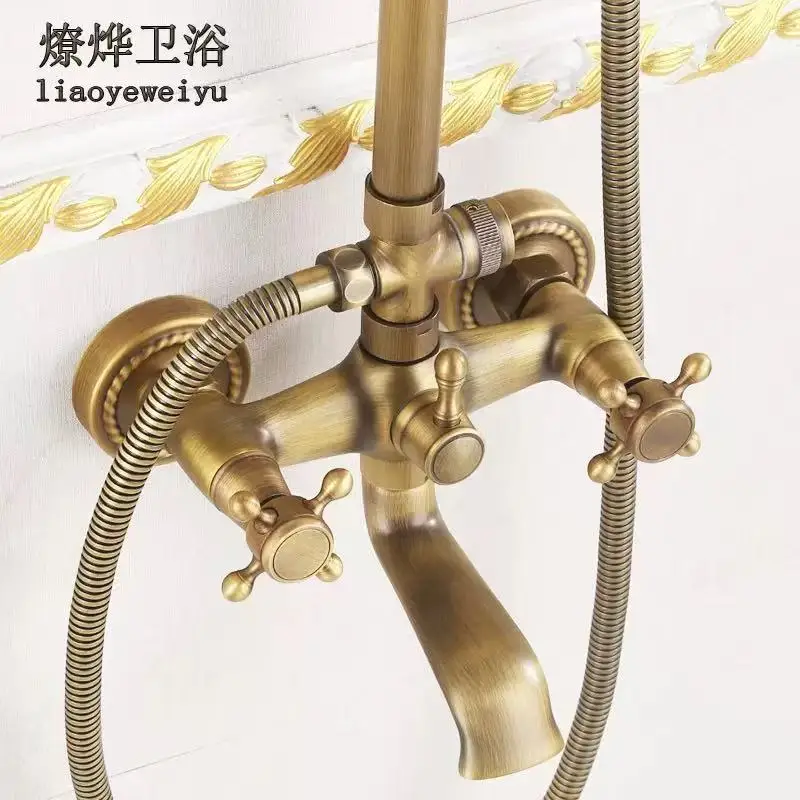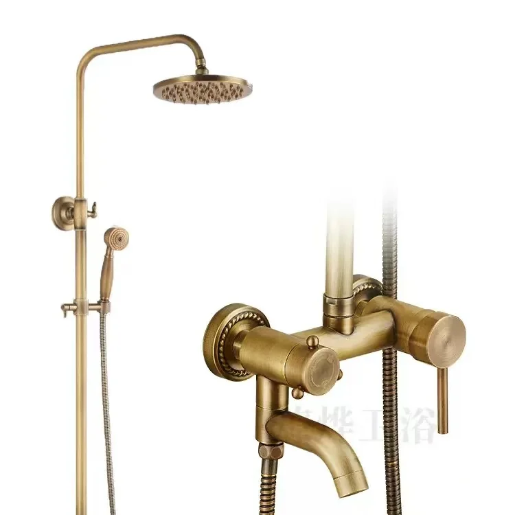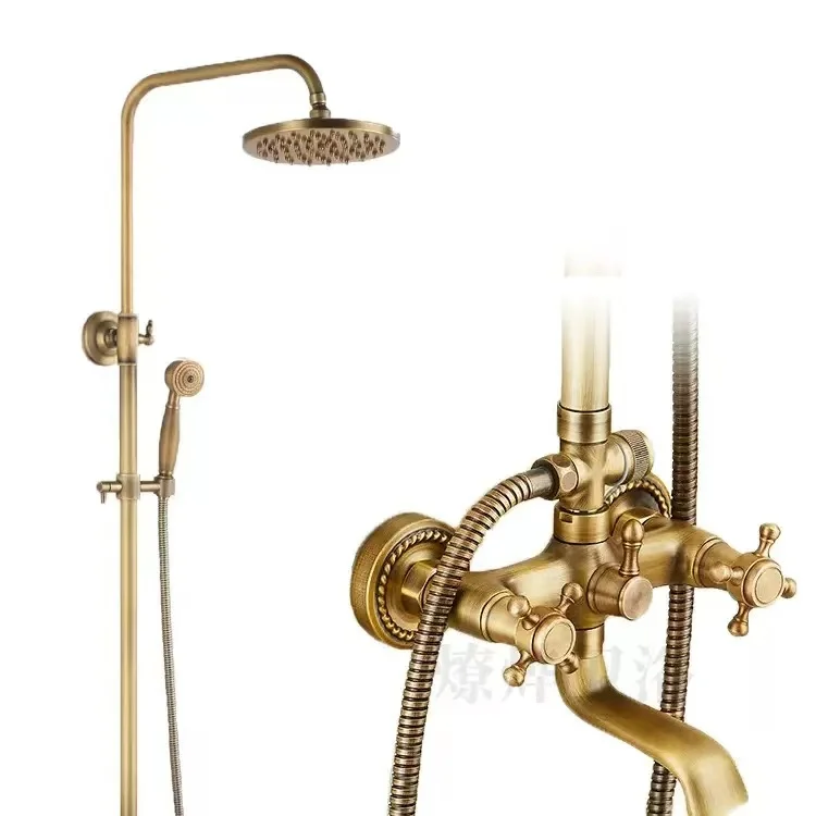 ชุดฝักบัวทองแดงโบราณทั้งหมด ชุดฝักบัวพอร์ซเลนสีน้ําเงินและสีขาวยุโรป สเปรย์ฉีดมือแรงดันอากาศ