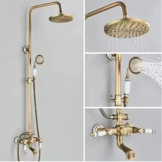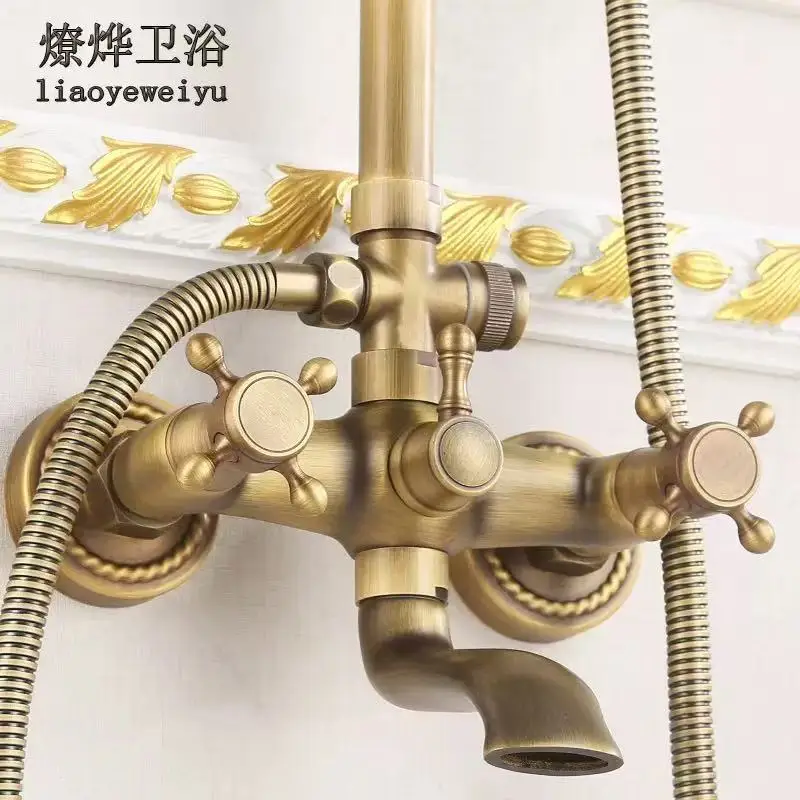 ชุดฝักบัวทองแดงโบราณทั้งหมด ชุดฝักบัวพอร์ซเลนสีน้ําเงินและสีขาวยุโรป สเปรย์ฉีดมือแรงดันอากาศ