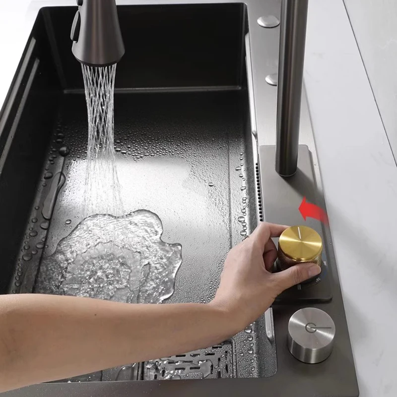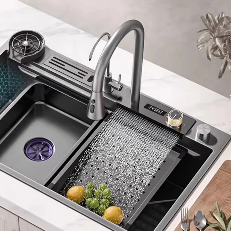 หรูหรา GunGrey ทองเหลือง LED ดิจิตอลจอแสดงผลห้องน้ําก๊อกน้ํา Minimalist ติดผนังฝังอ่างล้างหน้าน้ําตก Outlet Mixer TAP