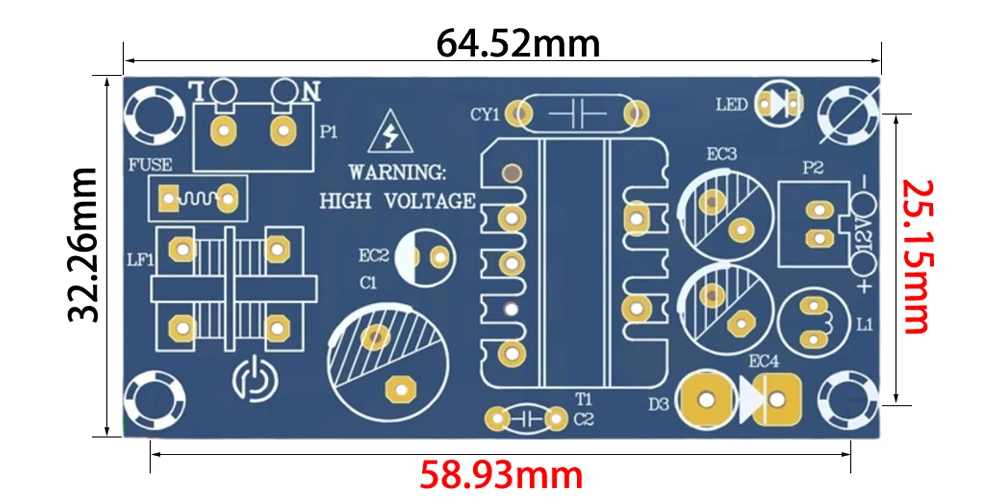 ขนาด: 64.52 * 32.26 * มม. (9V 12V 15V สูง 23 มม.) (5V สูง 22 มม.)